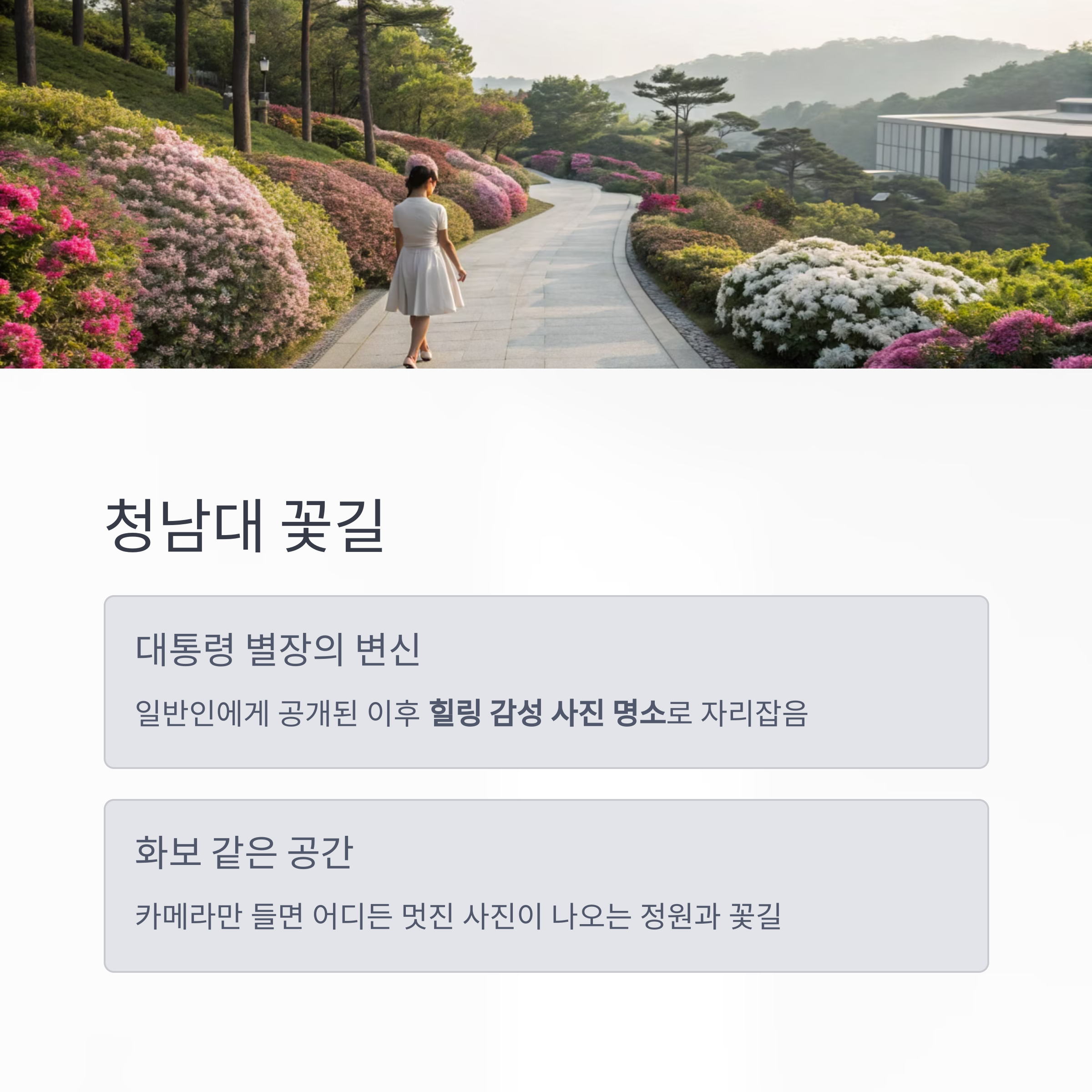 정원과 꽃길 산책로가 힐링 감성 사진 명소로 자리잡았습니다.