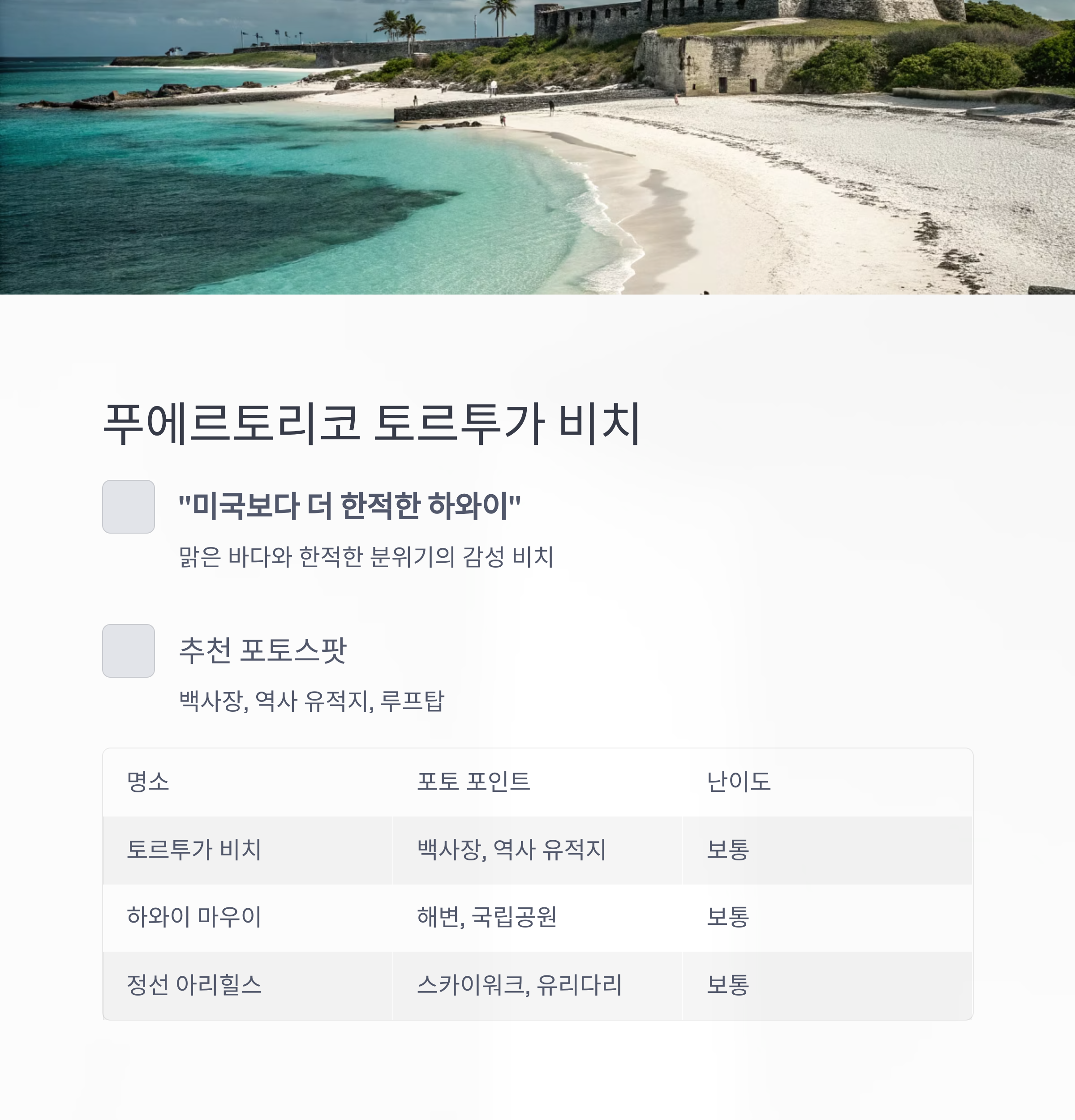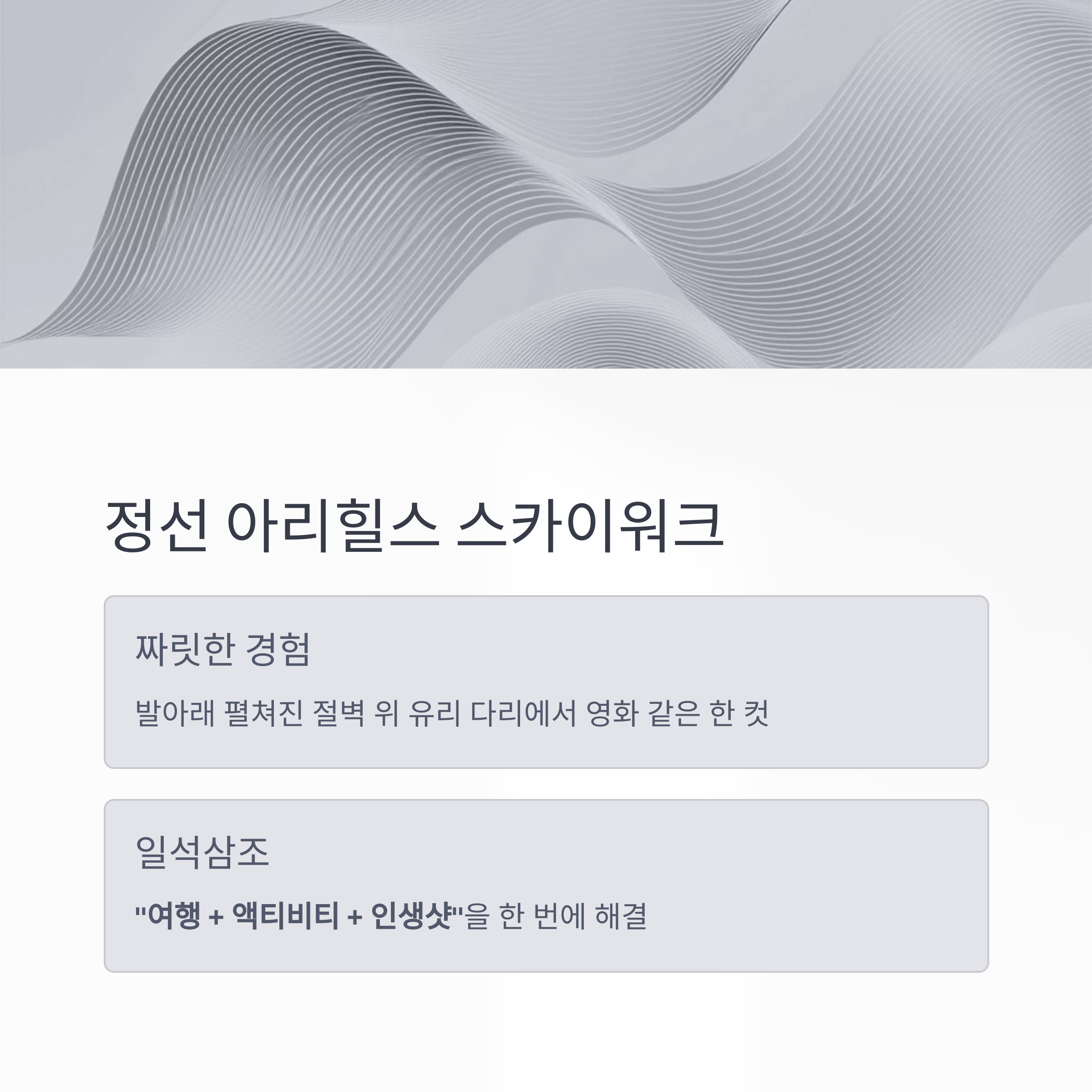 "여행 + 액티비티 + 인생샷"을 한 번에 해결할 수 있습니다.
