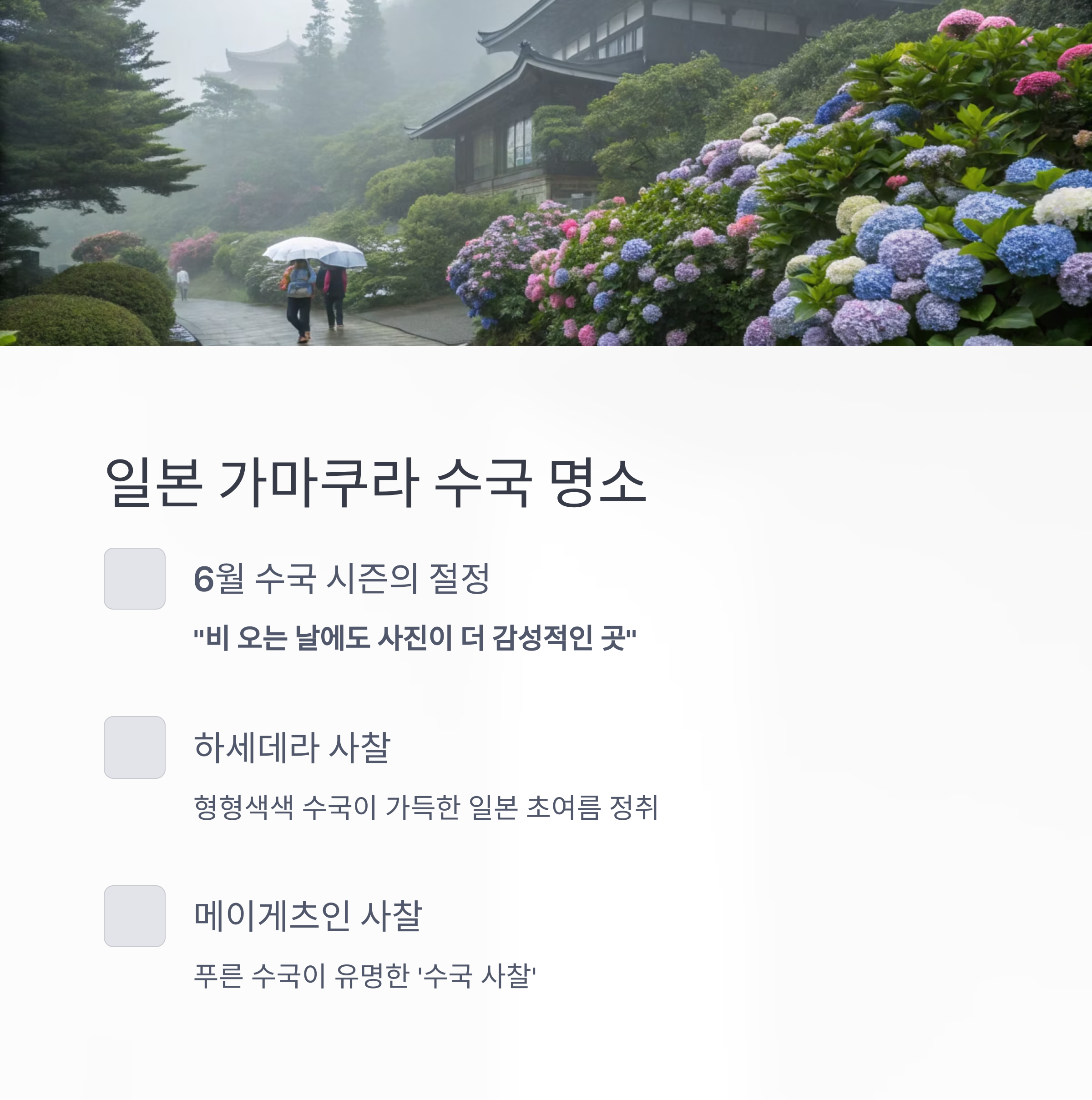 6월 수국 시즌에 가장 아름다운 곳으로 꼽히는 가마쿠라는