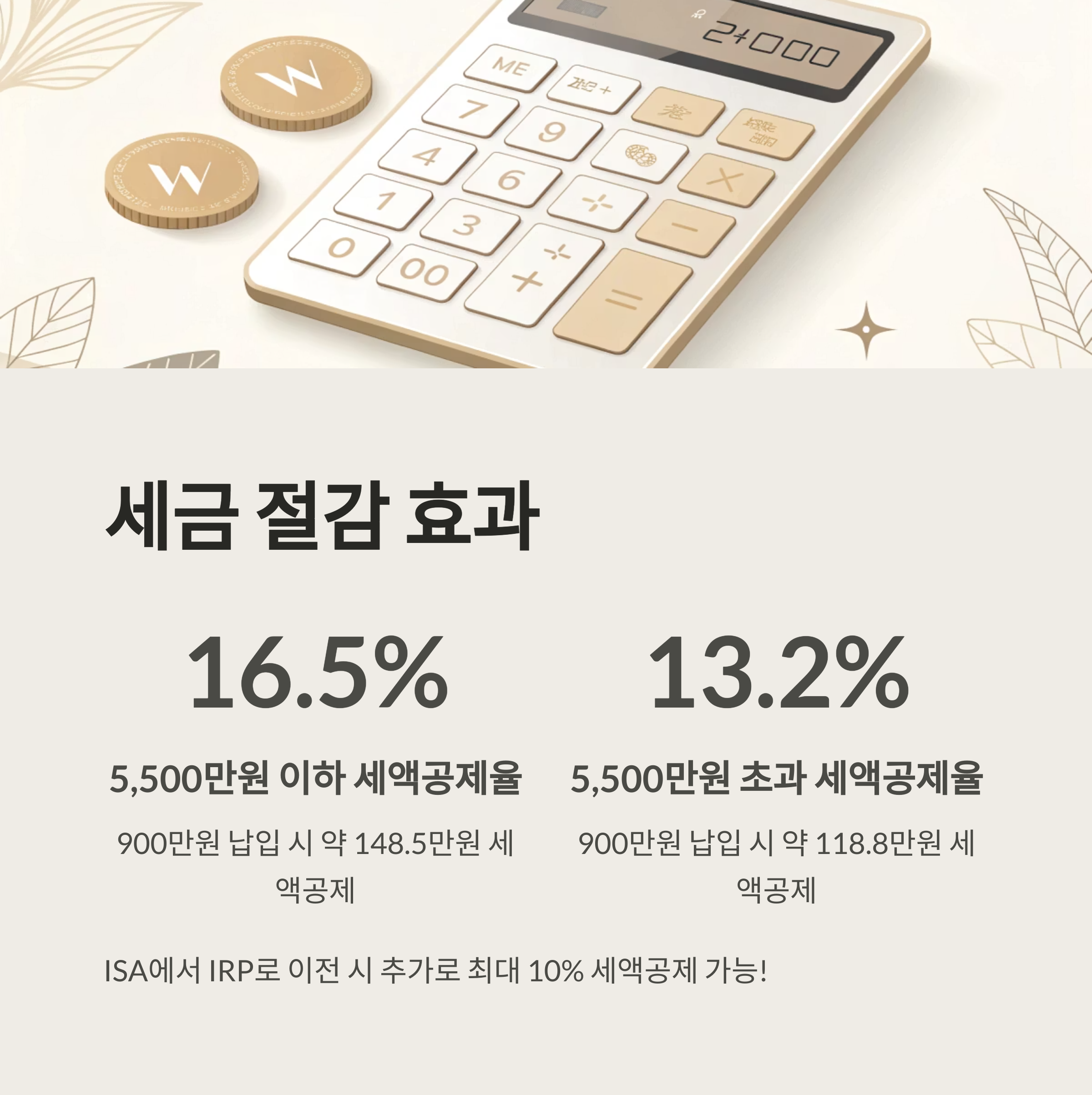 또한, ISA에서 IRP로 이전 시 추가로 최대 10% 세액공제도 가능합니다.