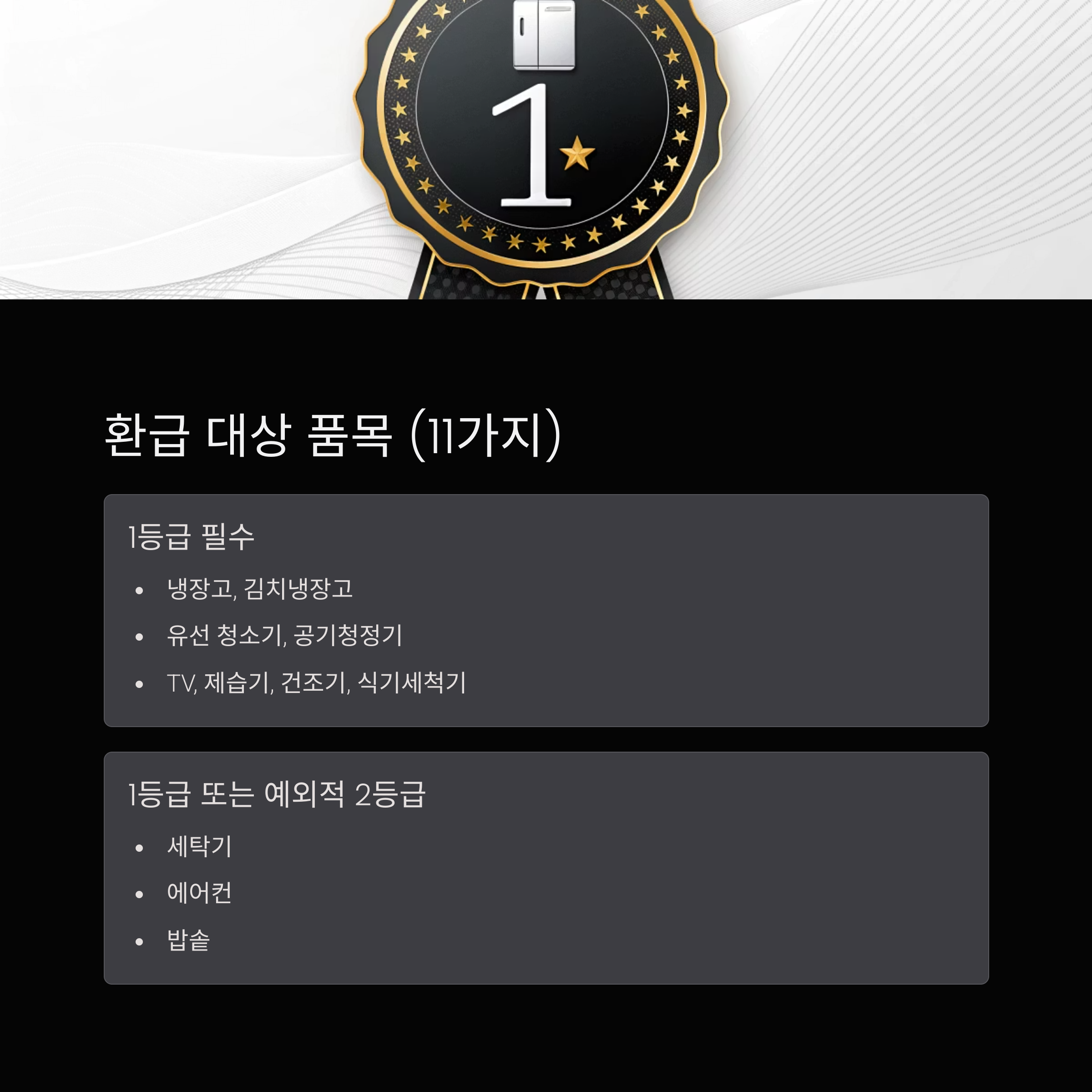 2025년 7월 4일 이후 1등급 가전제품을 구매한 만 19세 이상 대한민국 국민이라면