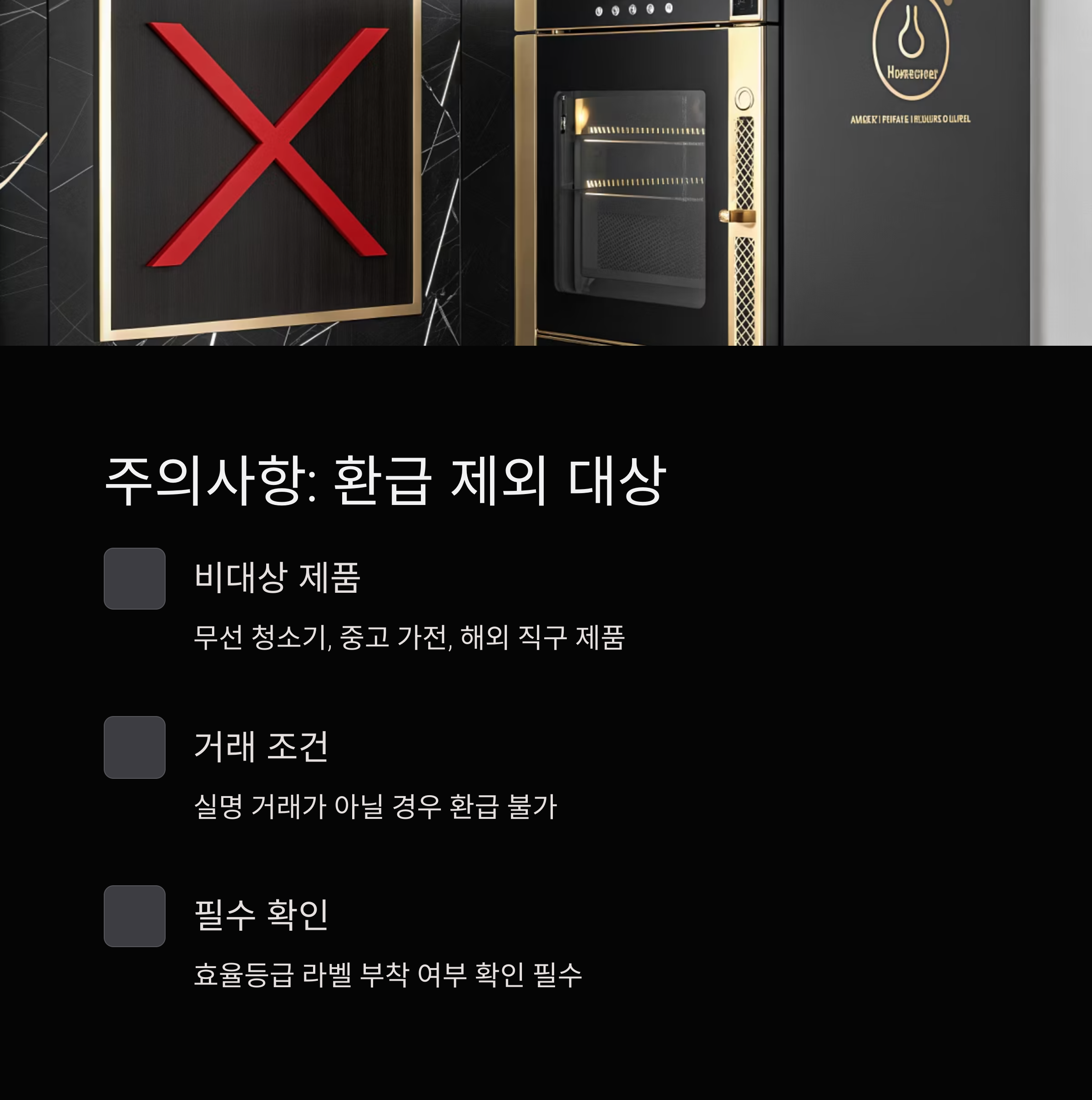무선 청소기, 중고 가전, 직구 제품 등은 환급 대상에서 제외됩니다.
