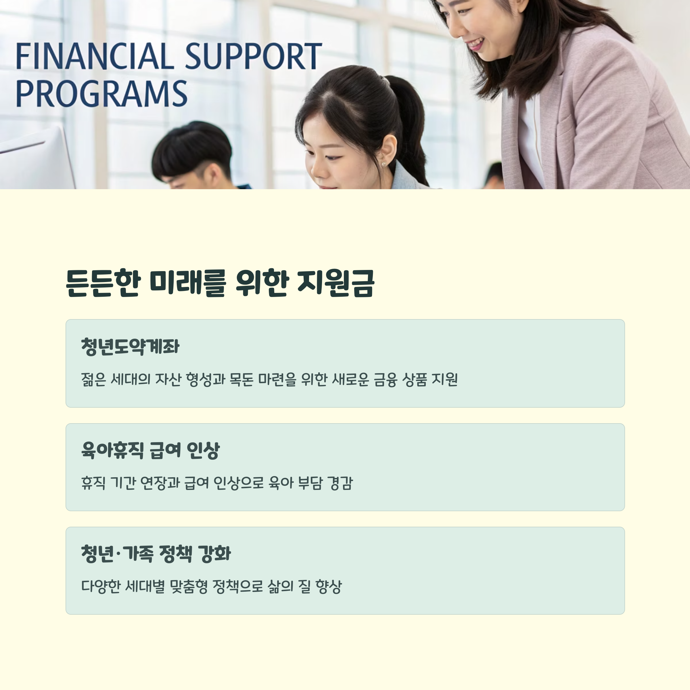 - 청년도약계좌: 정부기여금이 월 최대 3만 3천 원까지 확대