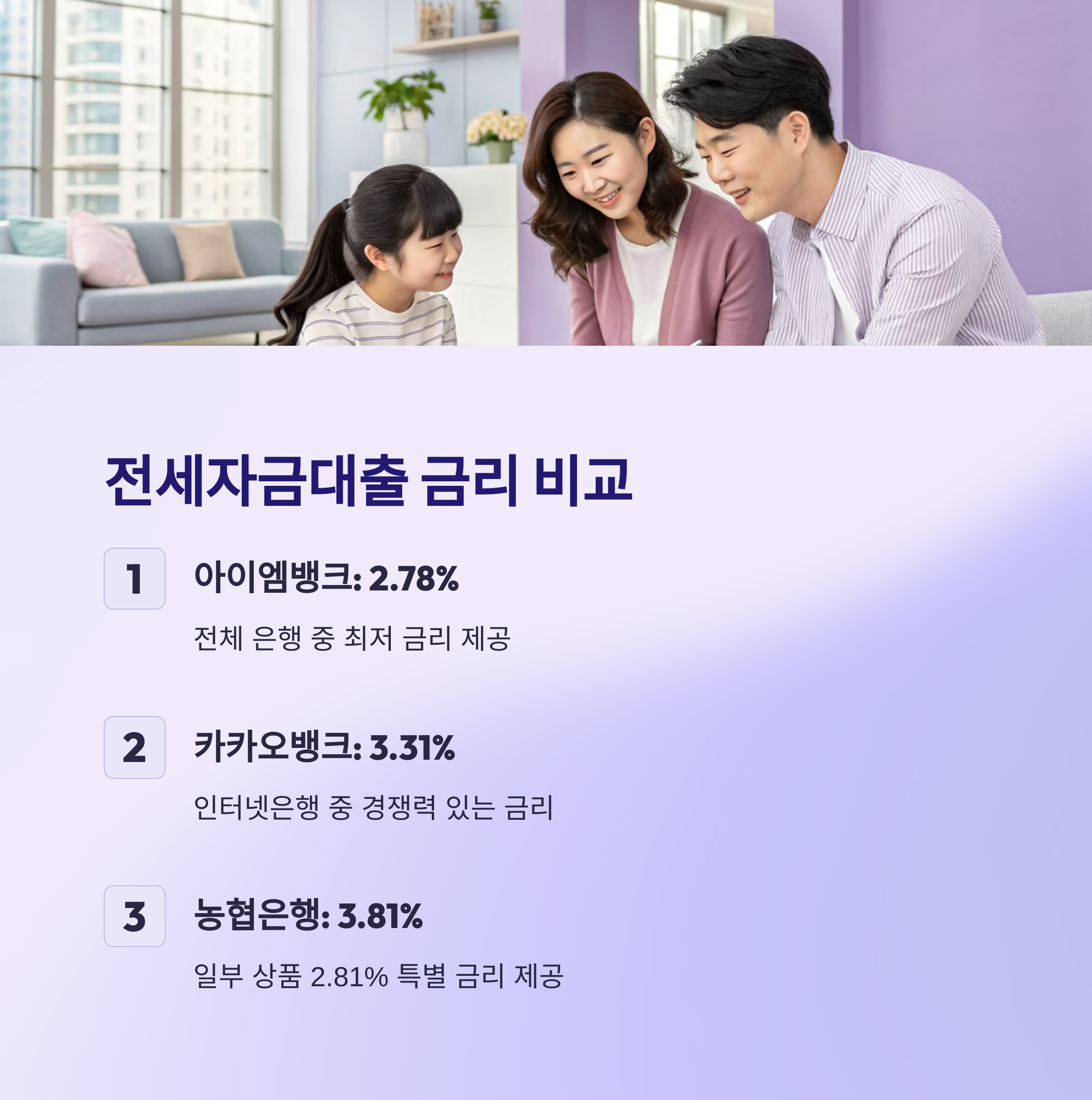 - 금리 비교: 아이엠뱅크, 삼성화재, 국민은행 등 금리가 낮은 은행을 우선적으로 검토하세요.