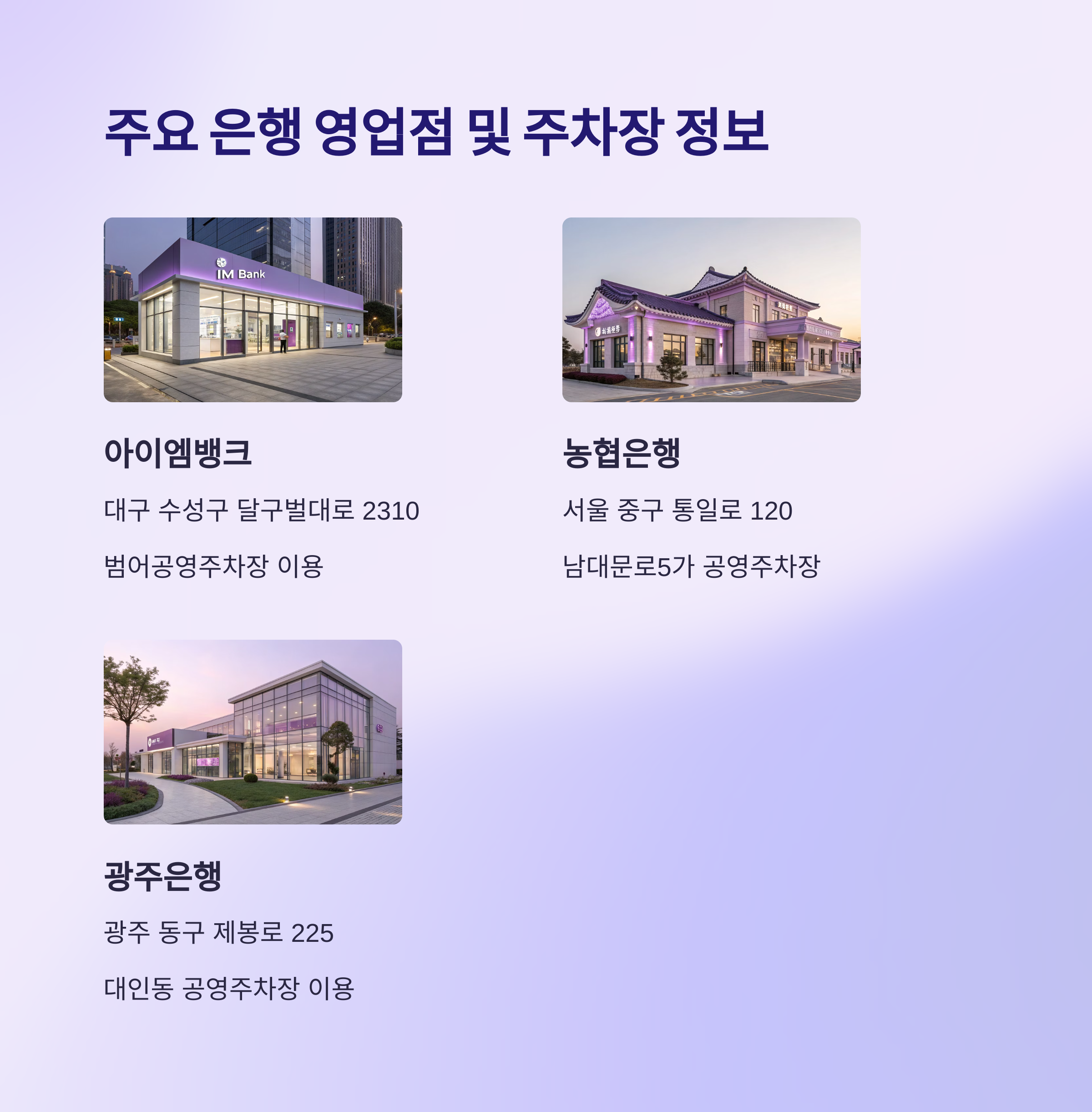 주요 은행 영업점 및 근처 공용 주차장 정보