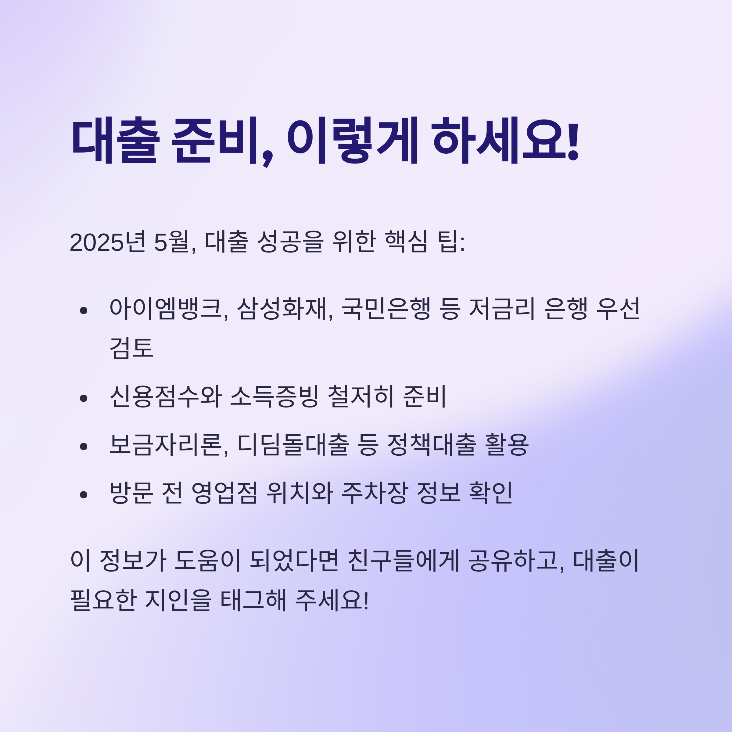 2025년 5월, 대출을 준비하는 분들은 다음 사항을 고려해야 합니다.