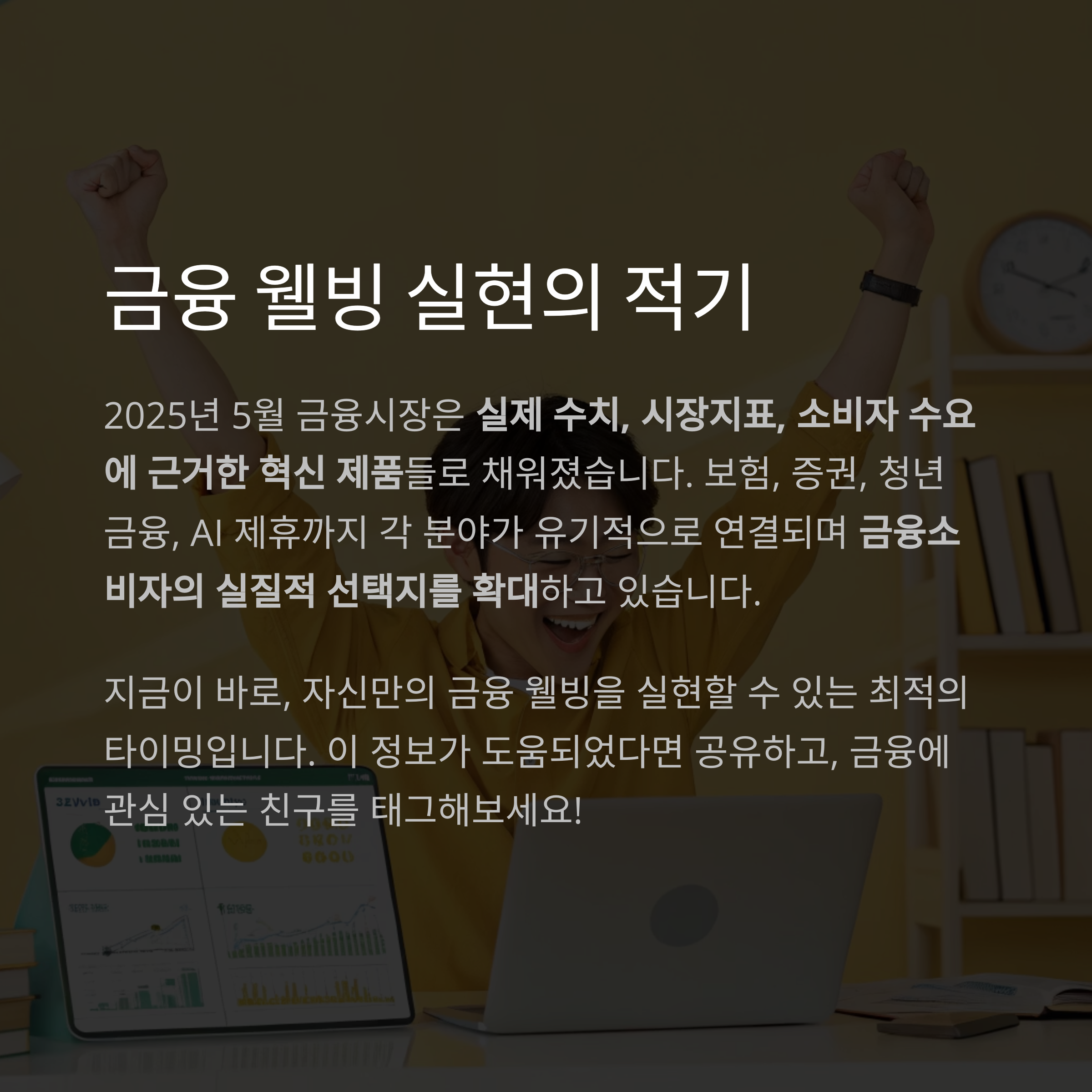 지금이 바로, 자신만의 금융 웰빙을 실현할 수 있는 최적의 타이밍입니다.