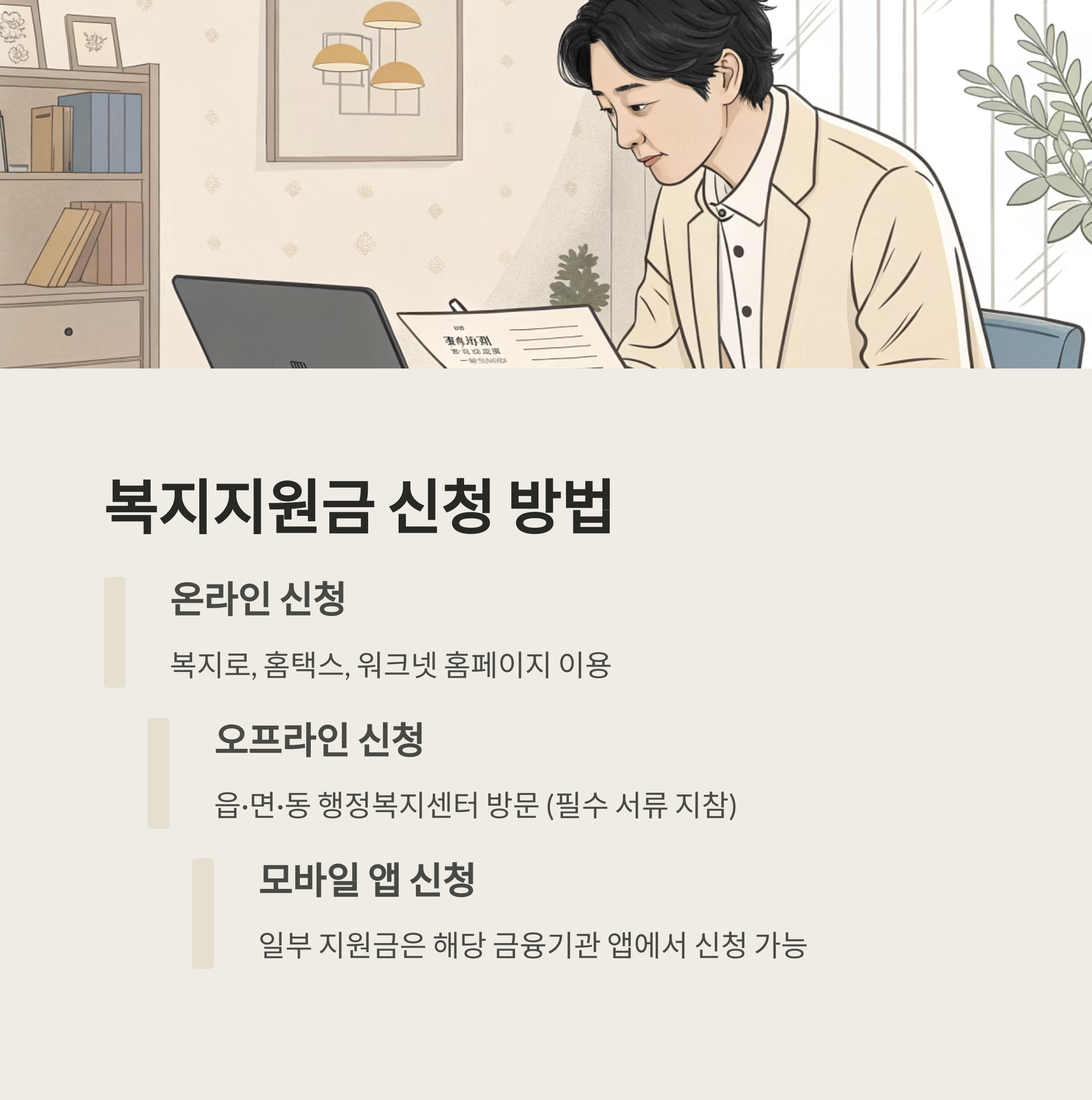 - 온라인: 복지로 홈페이지(www.bokjiro.go.kr)
