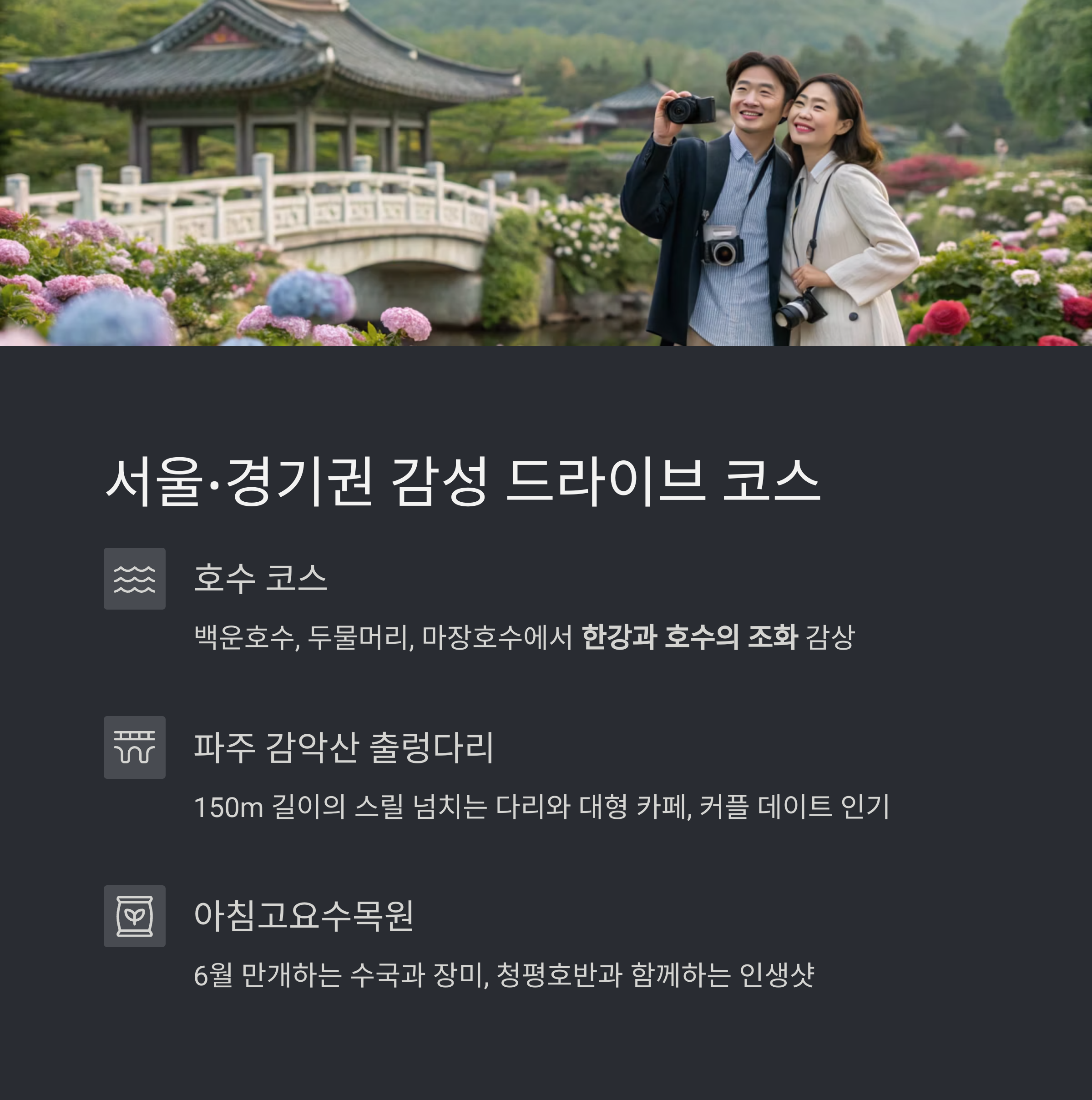 서울 근교에서 감성과 자연을 동시에 누릴 수 있는 최적의 코스