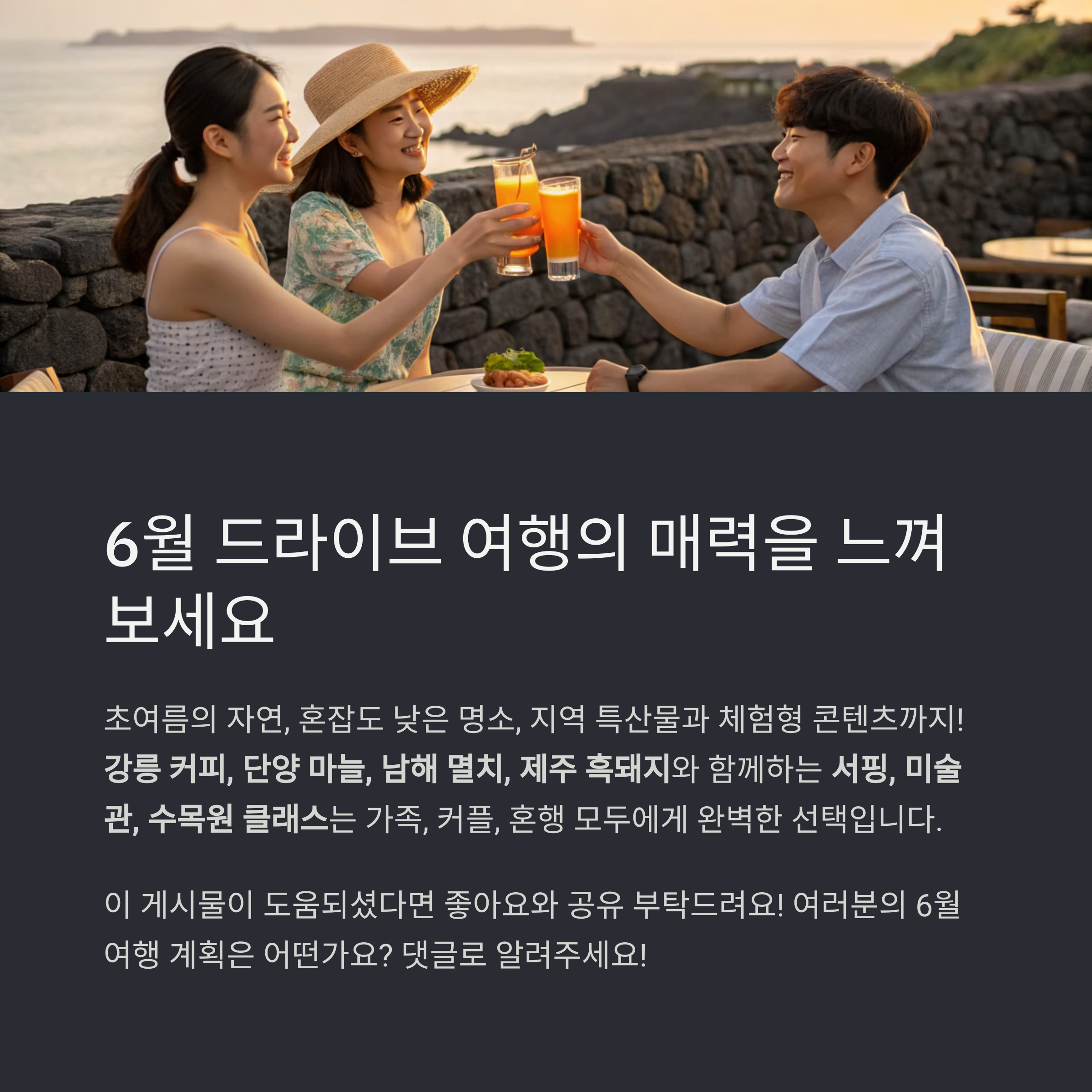 "6월 전국 드라이브 여행은 누구에게나 추천할 만한 최고의 선택입니다"