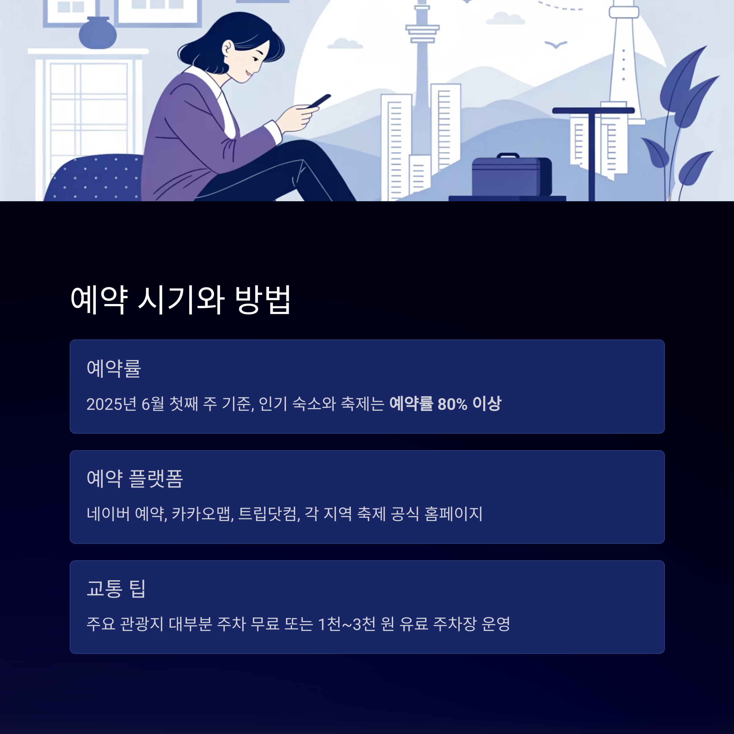 2025년 6월 첫째 주 기준, 인기 숙소와 축제는 예약률 80% 이상입니다.