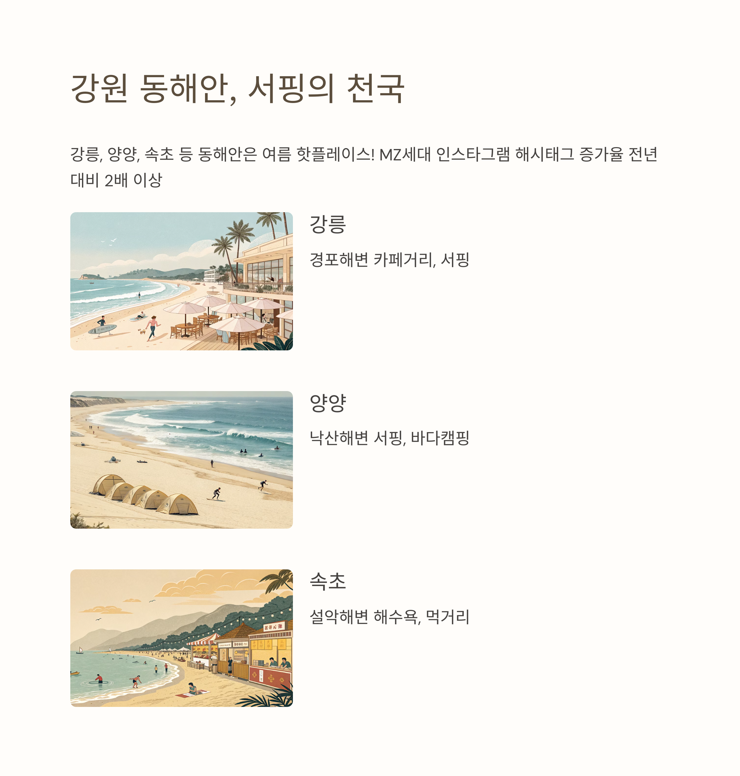 강릉, 양양, 속초 등 강원도 동해안은 여름마다 핫플레이스 순위를 차지하고 있습니다.