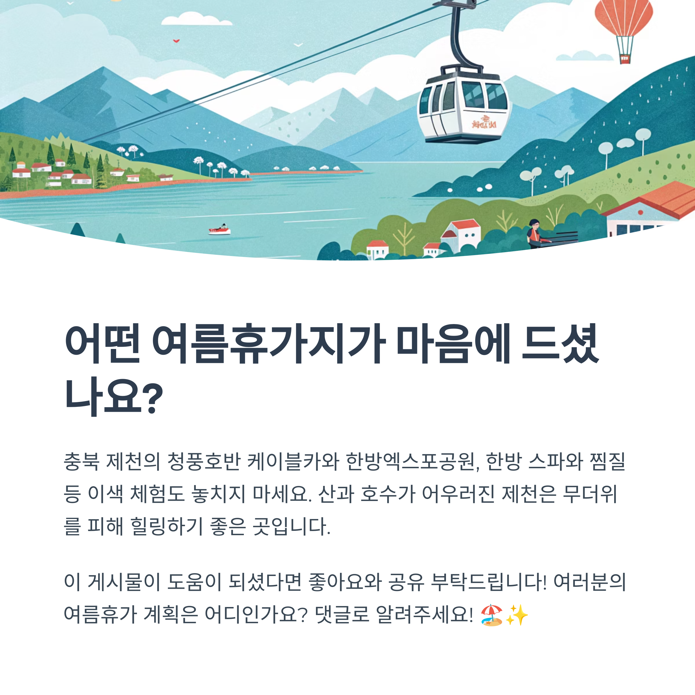 산과 호수의 도시 제천은 여름철 무더위를 피해 힐링할 수 있는