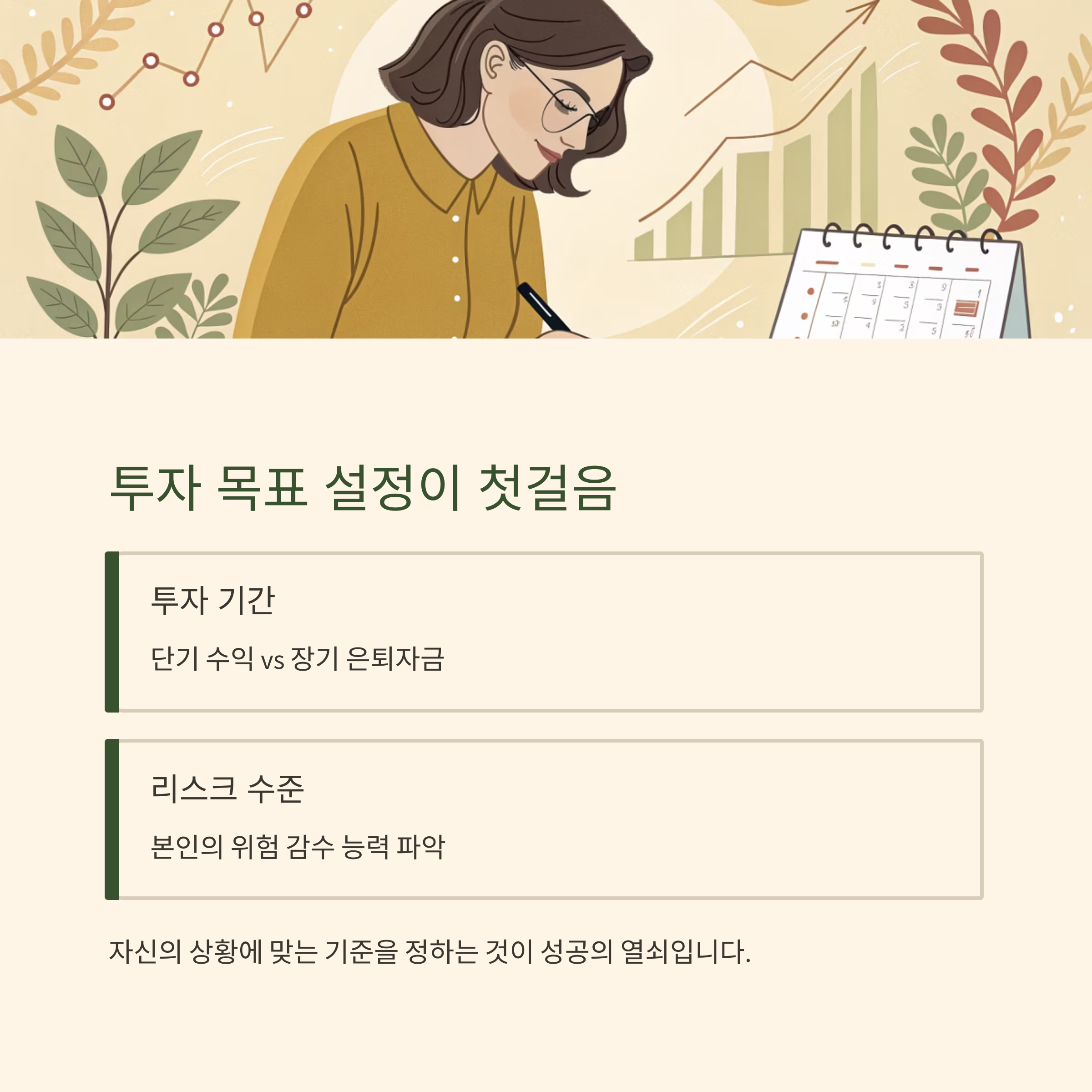 명확한 투자 목표 설정입니다. 단기 수익을 원하는지,