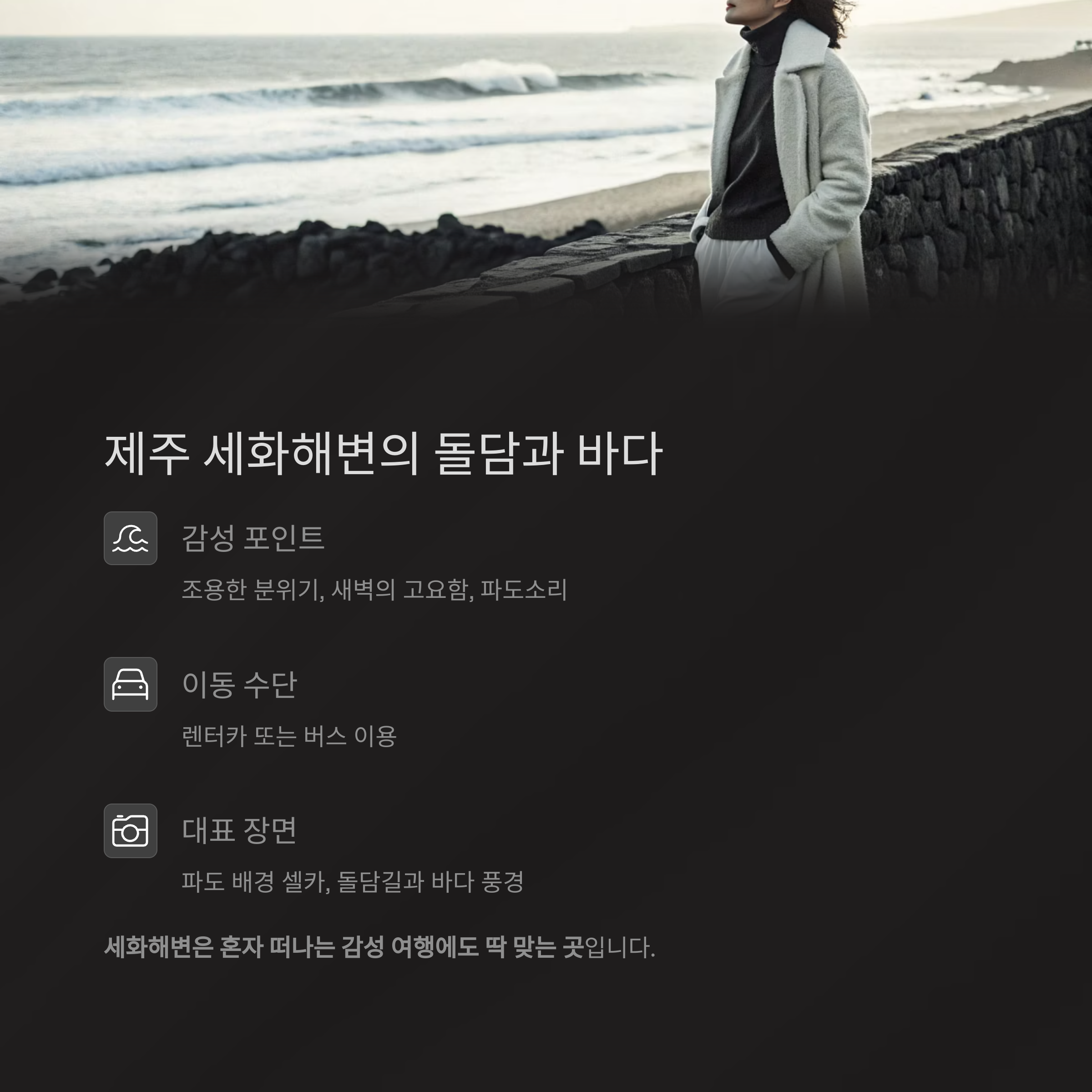 세화해변은 혼자 떠나는 감성 여행에도 딱 맞는 곳입니다
