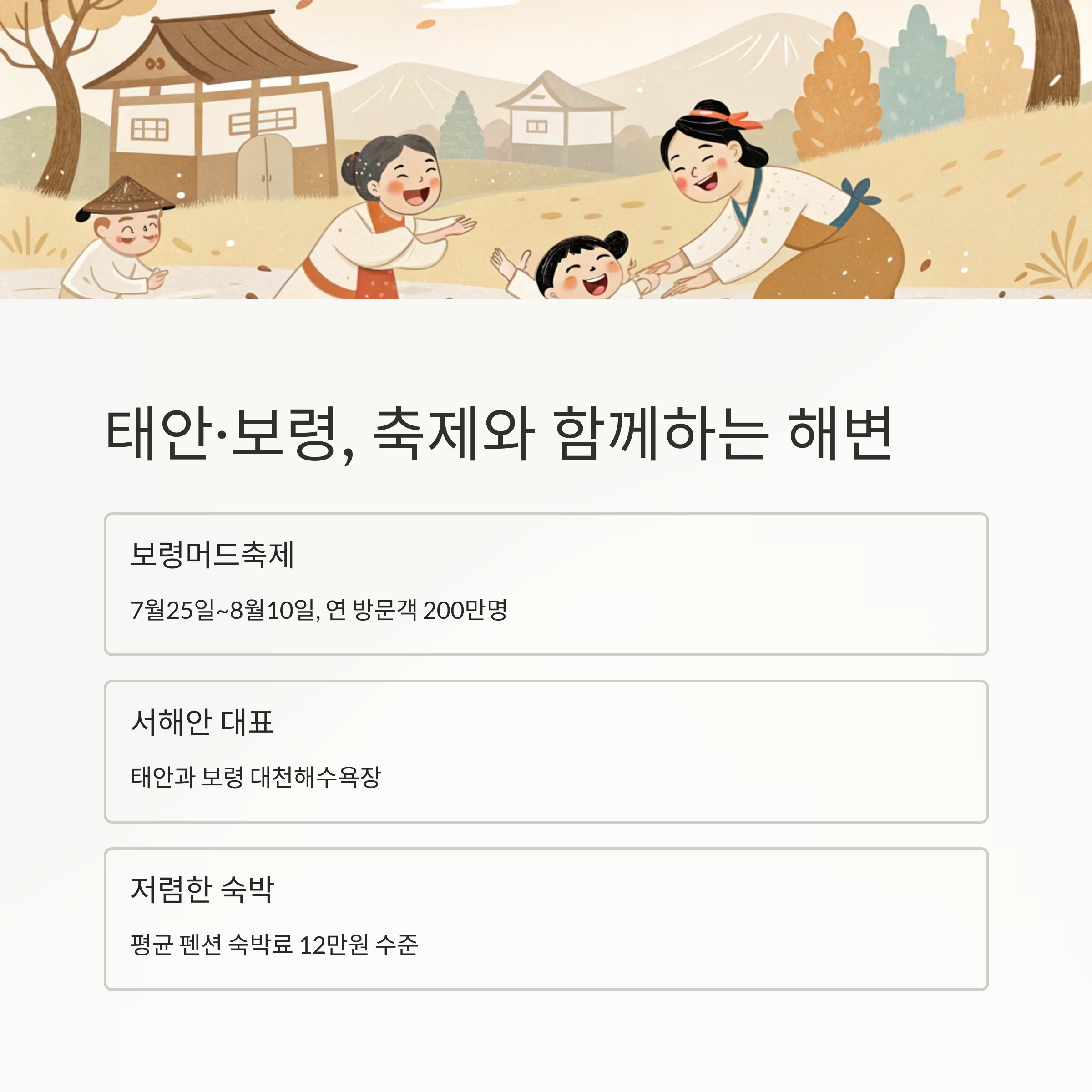 충남 태안과 보령 대천해수욕장은 서해안 대표 가족 피서지입니다.