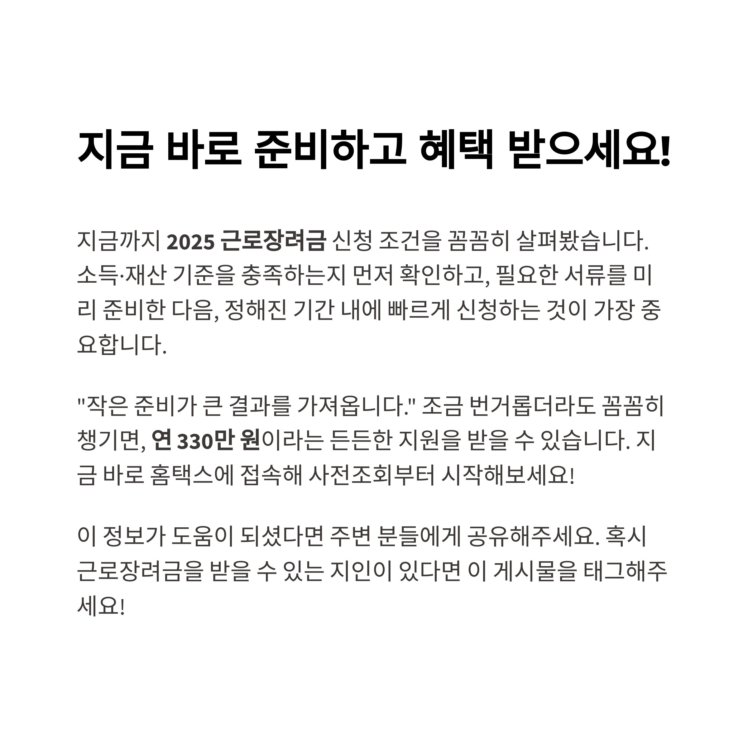 결론: 2025 근로장려금, 지금부터 준비하세요