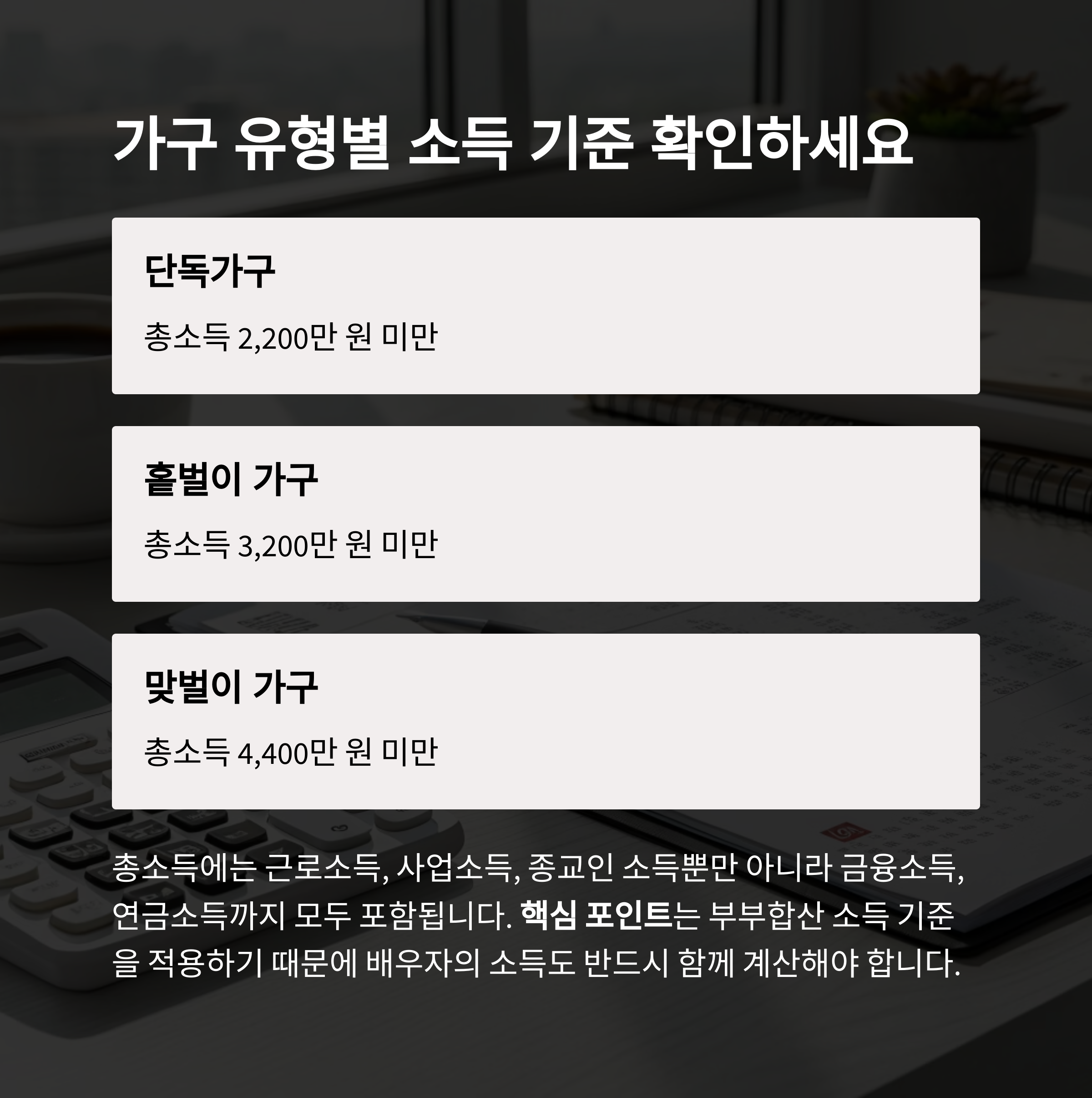 - 맞벌이 가구: 총소득 4,400만 원 미만