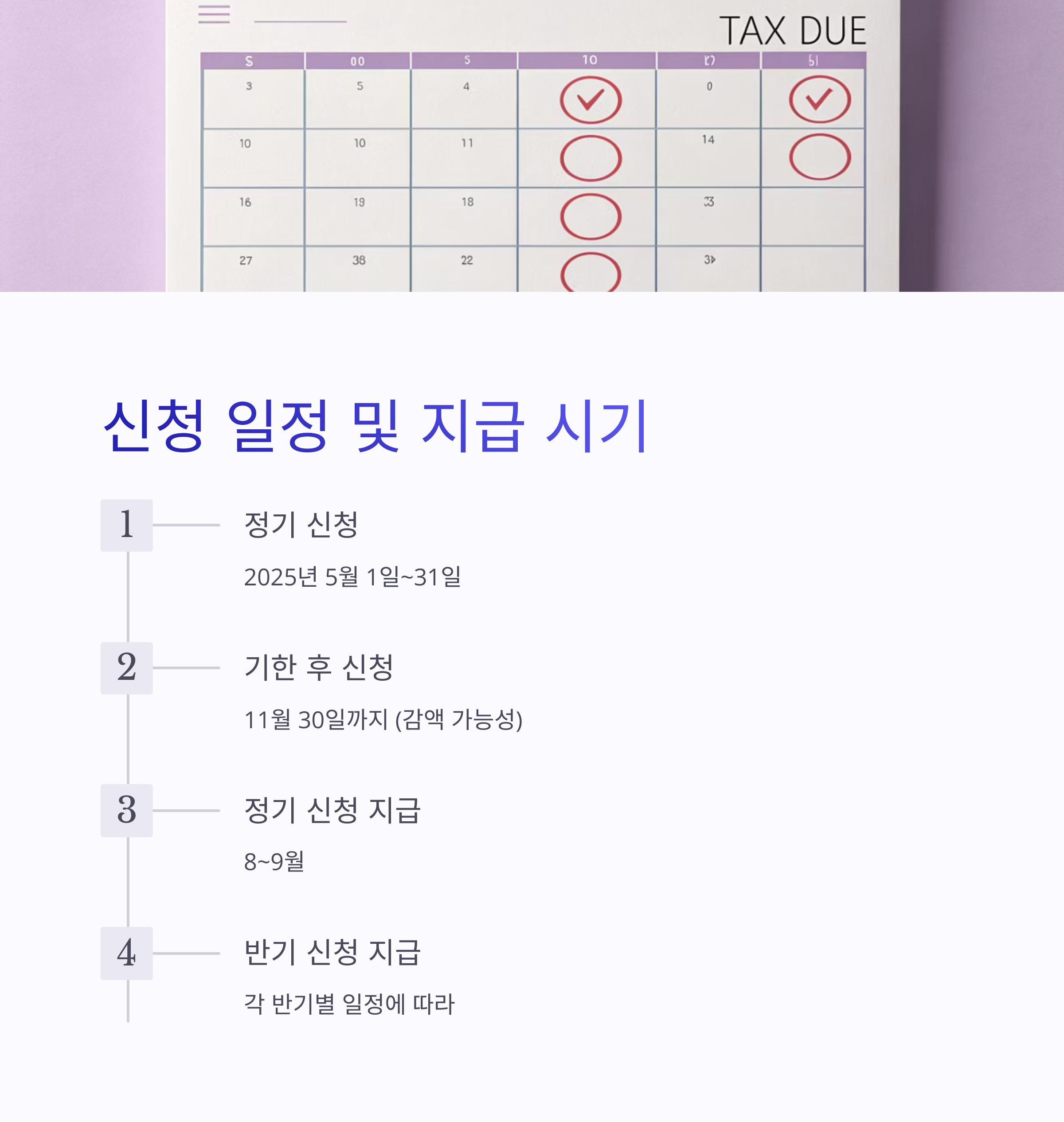 지급은 정기 신청자는 8~9월, 반기 신청자는 각 반기별 일정에 따라 이뤄집니다.