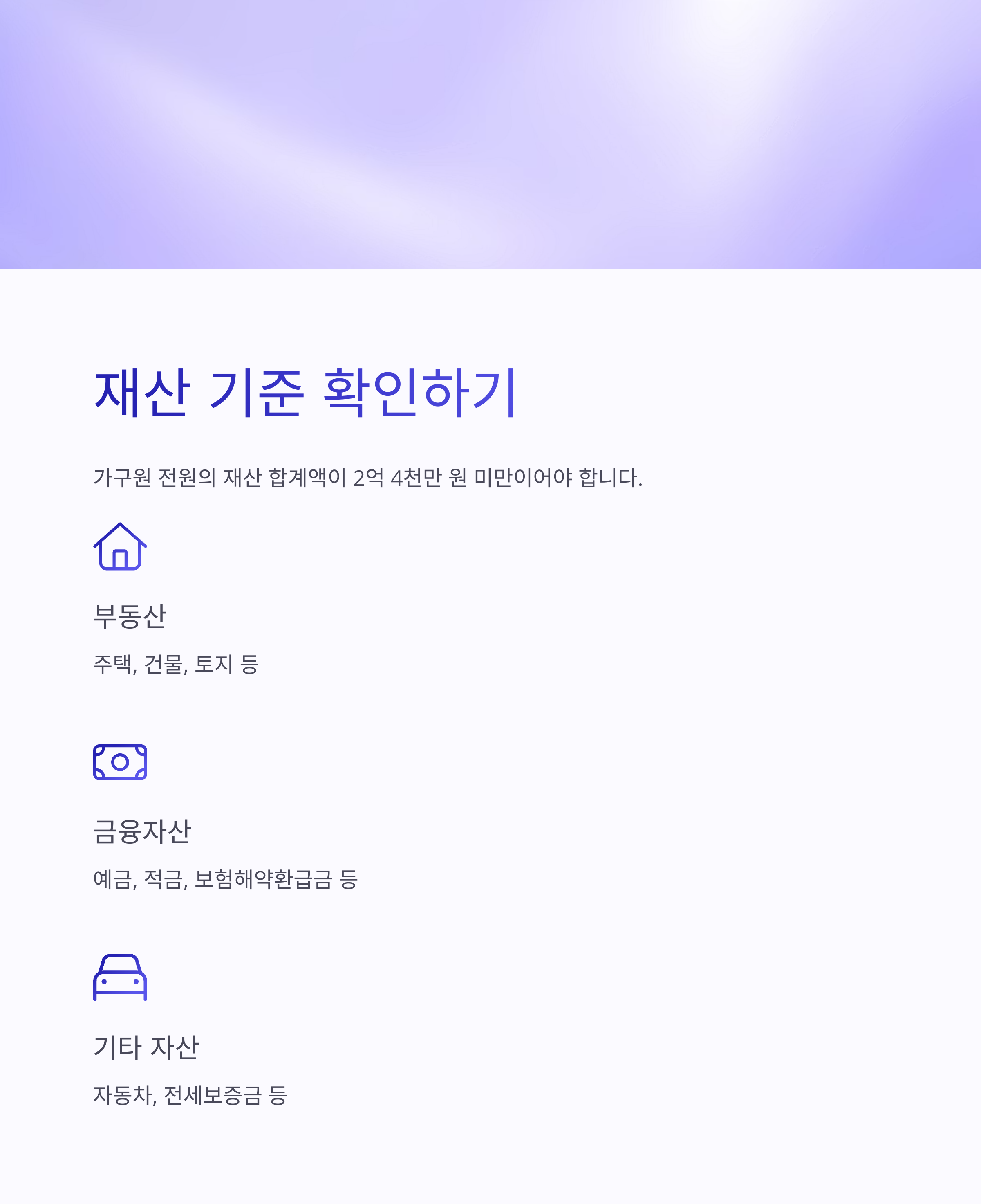 가구원 전원의 재산 합계액이 2억 4천만 원 미만이어야 합니다.