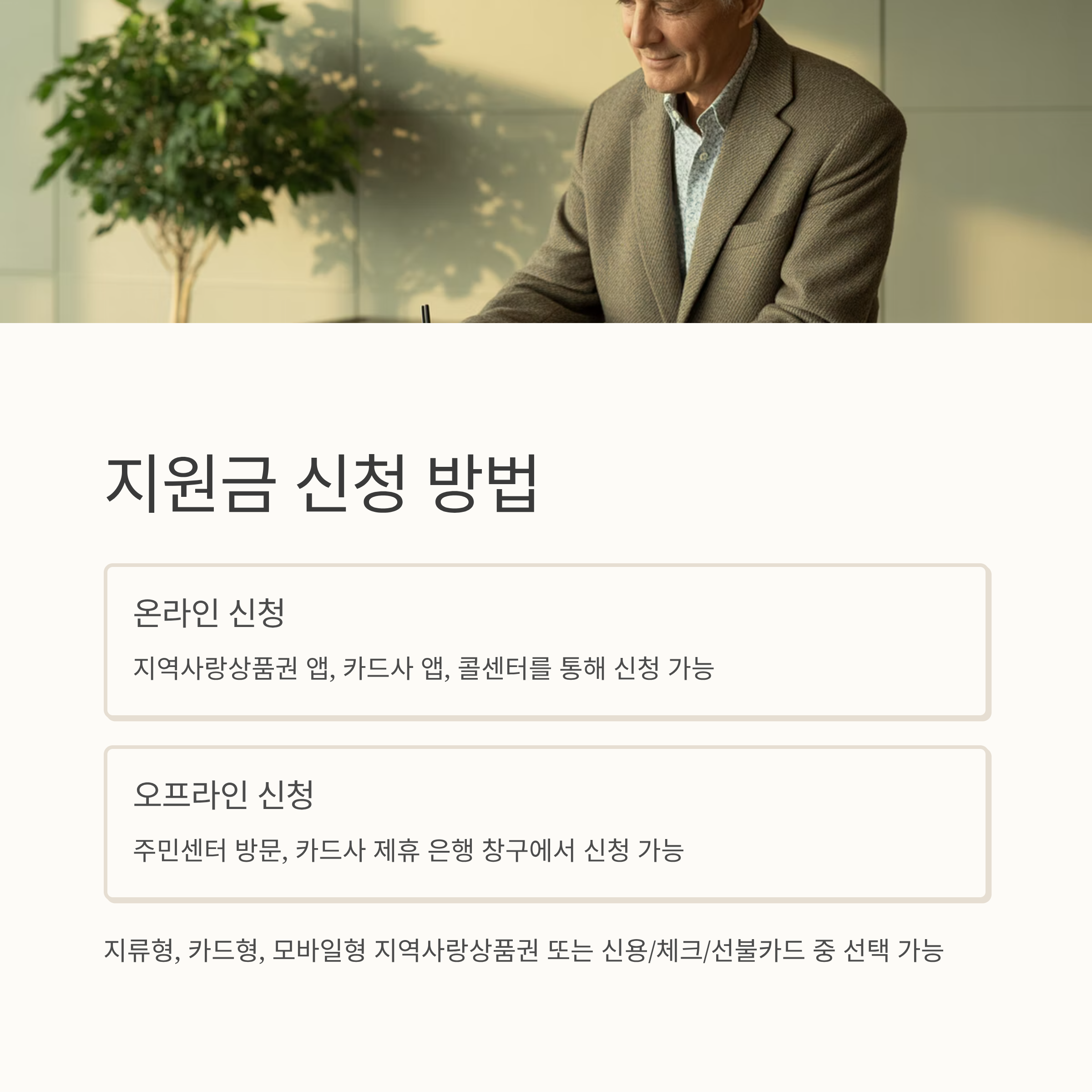 | 온라인 신청 | 지역사랑상품권 앱, 카드사 앱, 콜센터 |