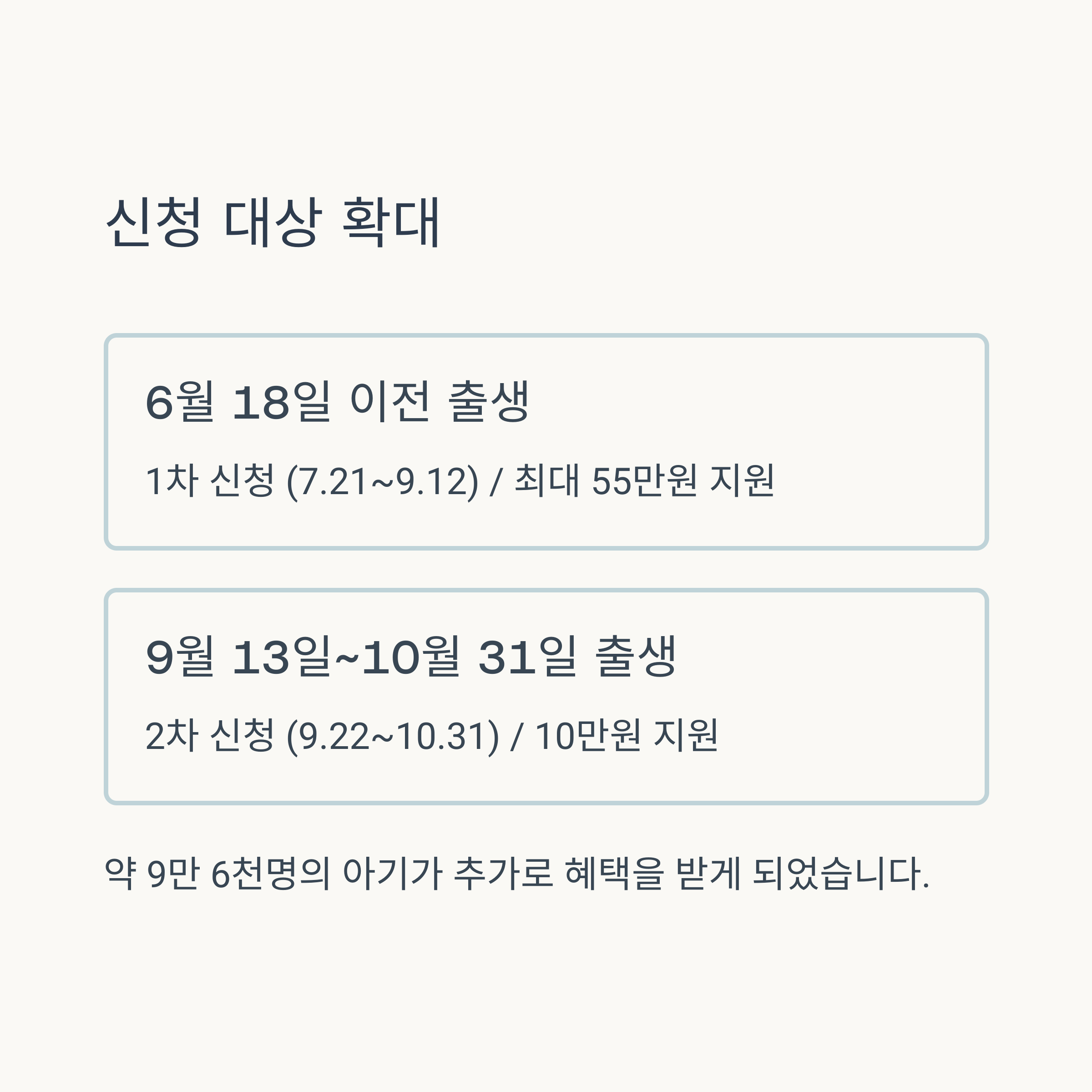 | 6월 18일 이전 | 1차 신청 (7.21~9.12) | 최대 55만 원 |