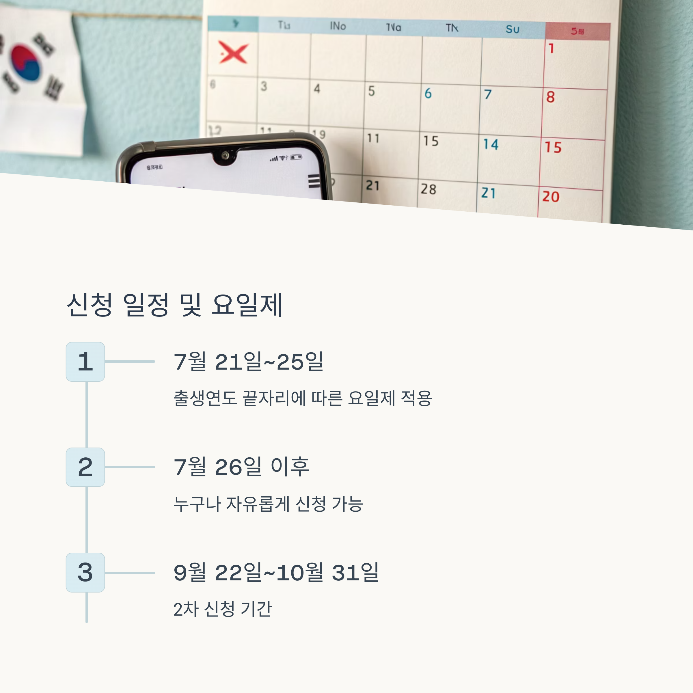 첫 주(7.21~7.25)는 출생연도 끝자리에 따른 요일제가 적용됩니다.