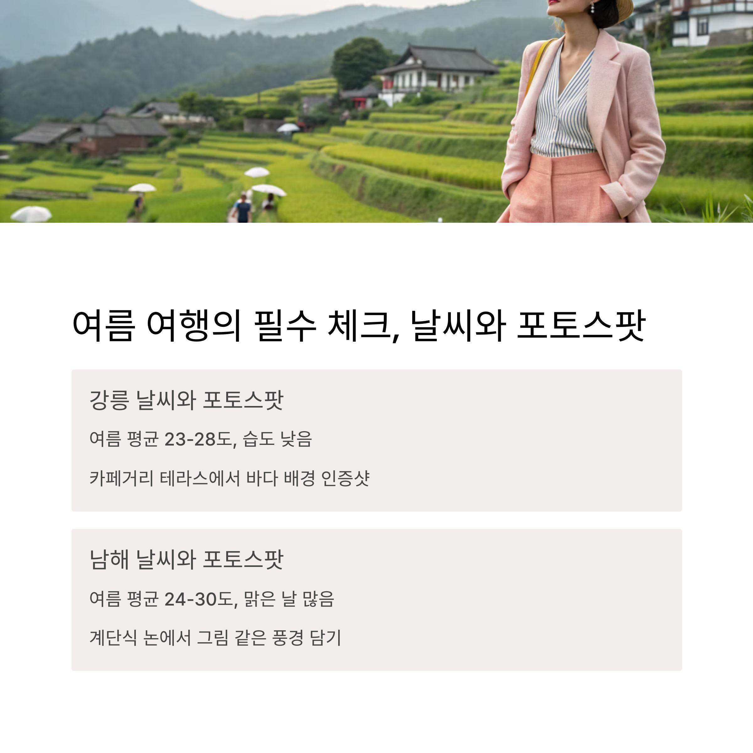 여름 여행의 필수 체크, 날씨와 포토스팟
