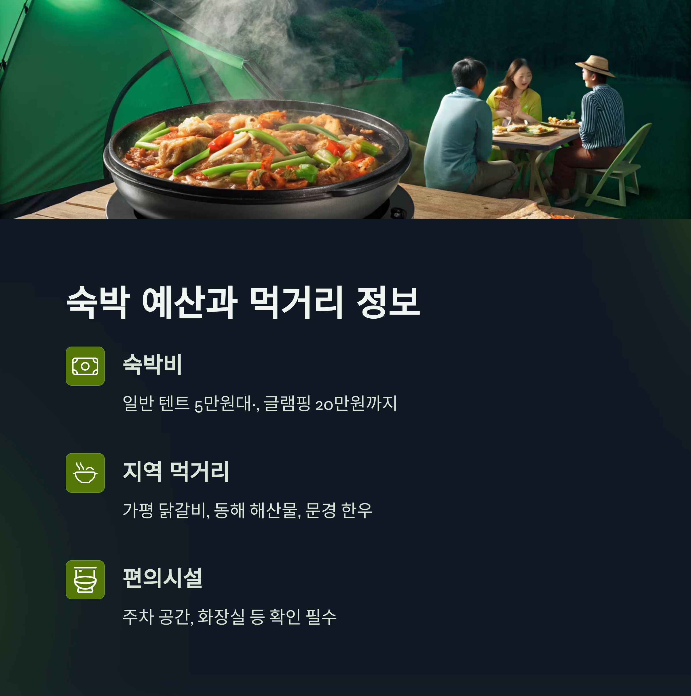 숙박 예산과 먹거리, 캠핑장 정보 총망라