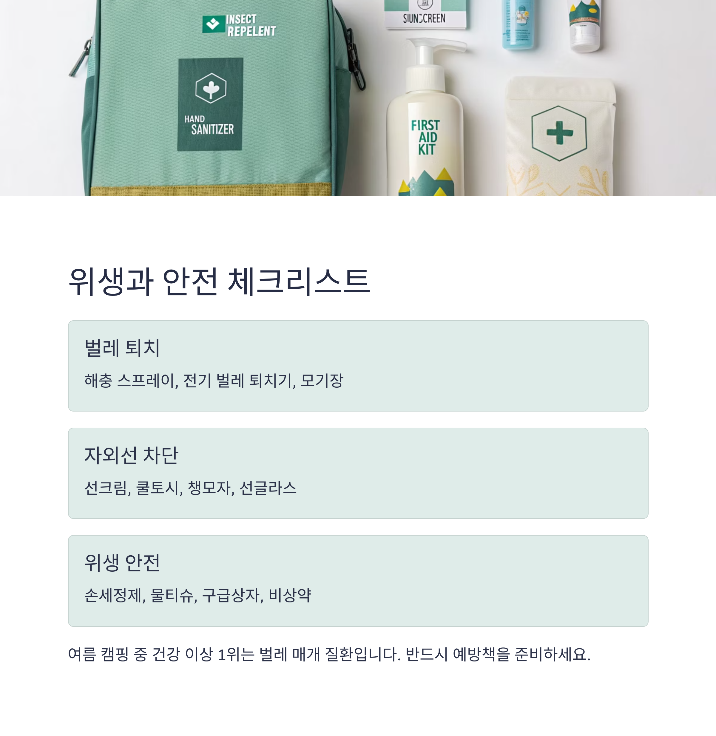 핵심: 여름 캠핑 중 건강 이상 1위는 벌레 매개 질환입니다. 반드시 예방책을 준비하세요.