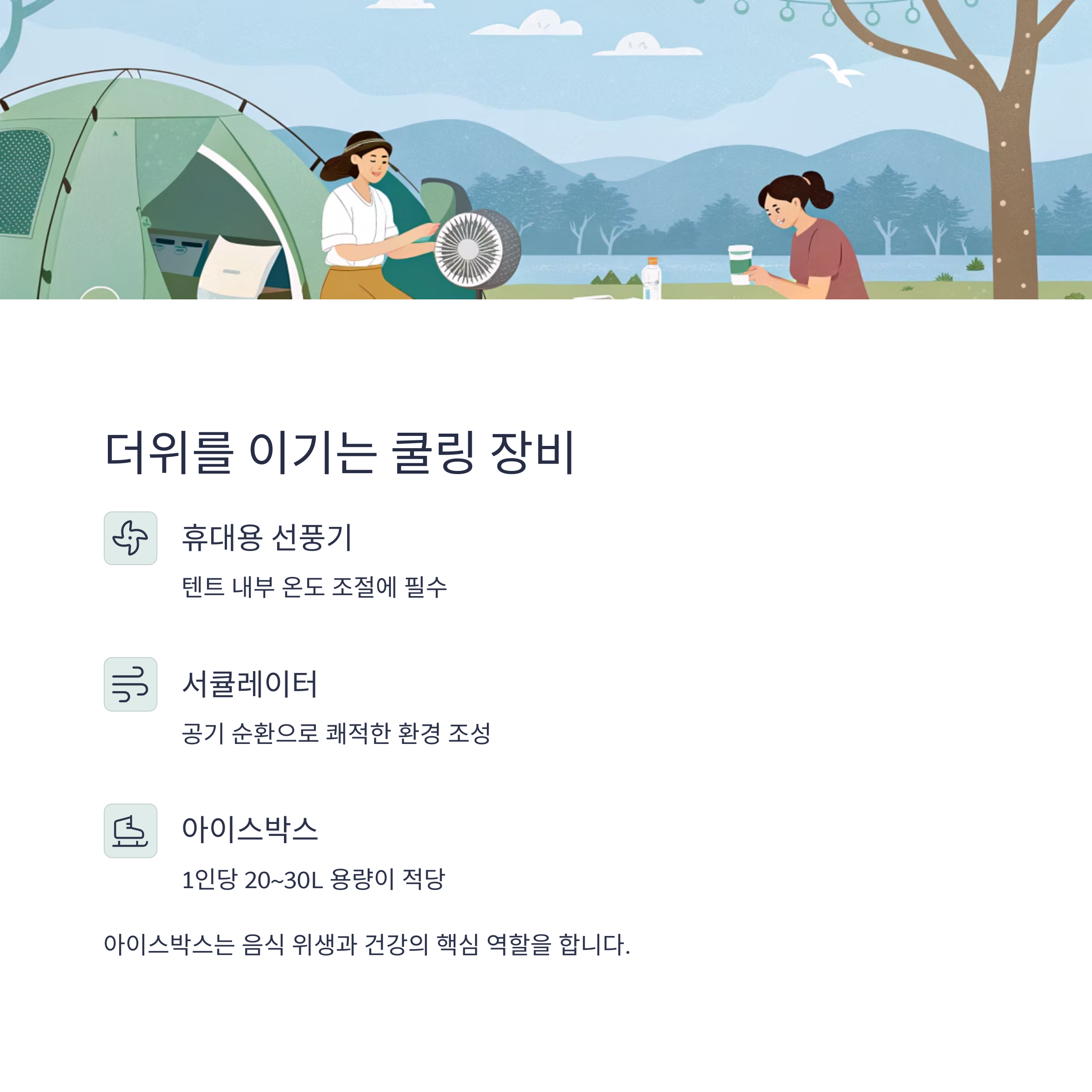 쿨링 장비는 여름 캠핑의 생명줄