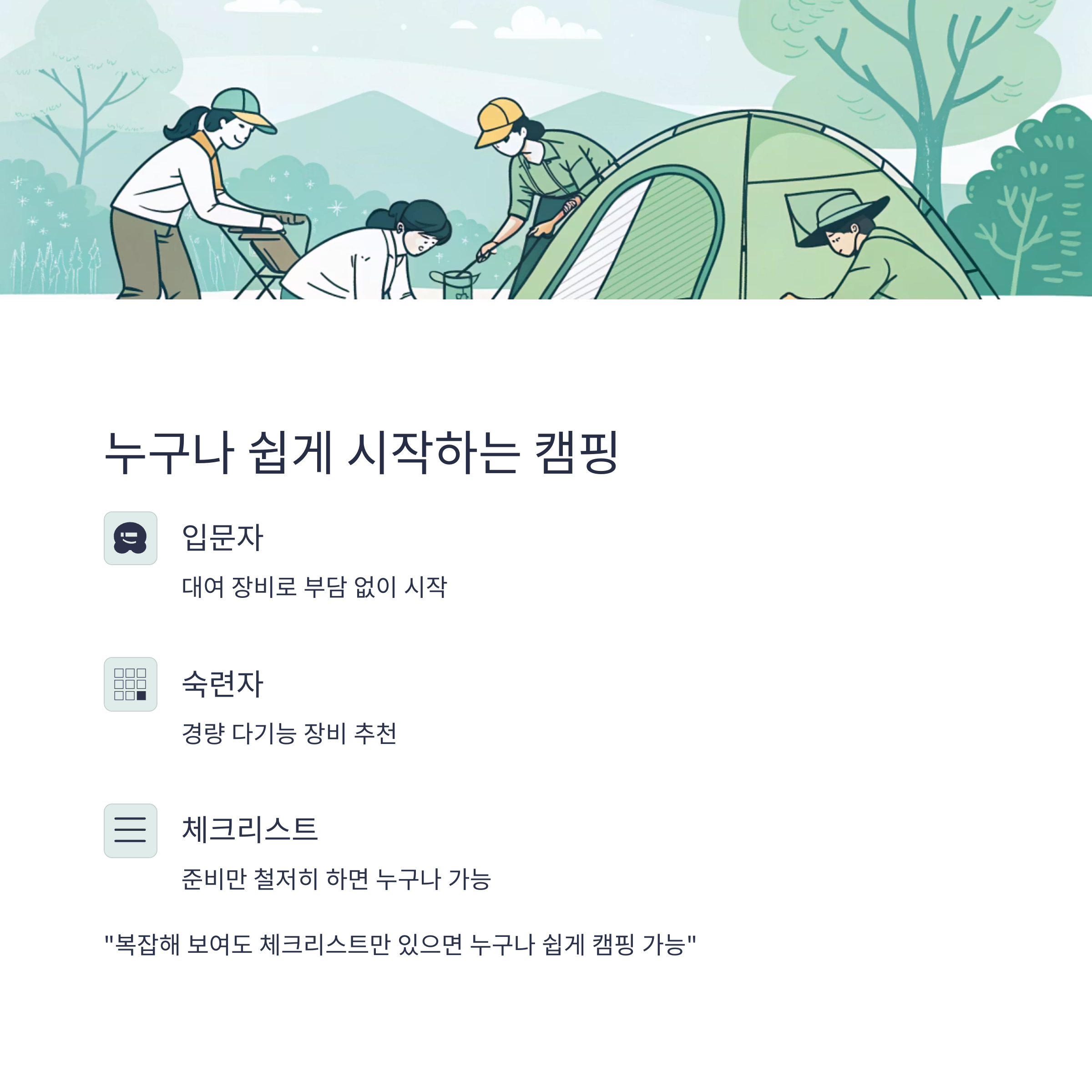 "복잡해 보여도 체크리스트만 있으면 누구나 쉽게 캠핑 가능"