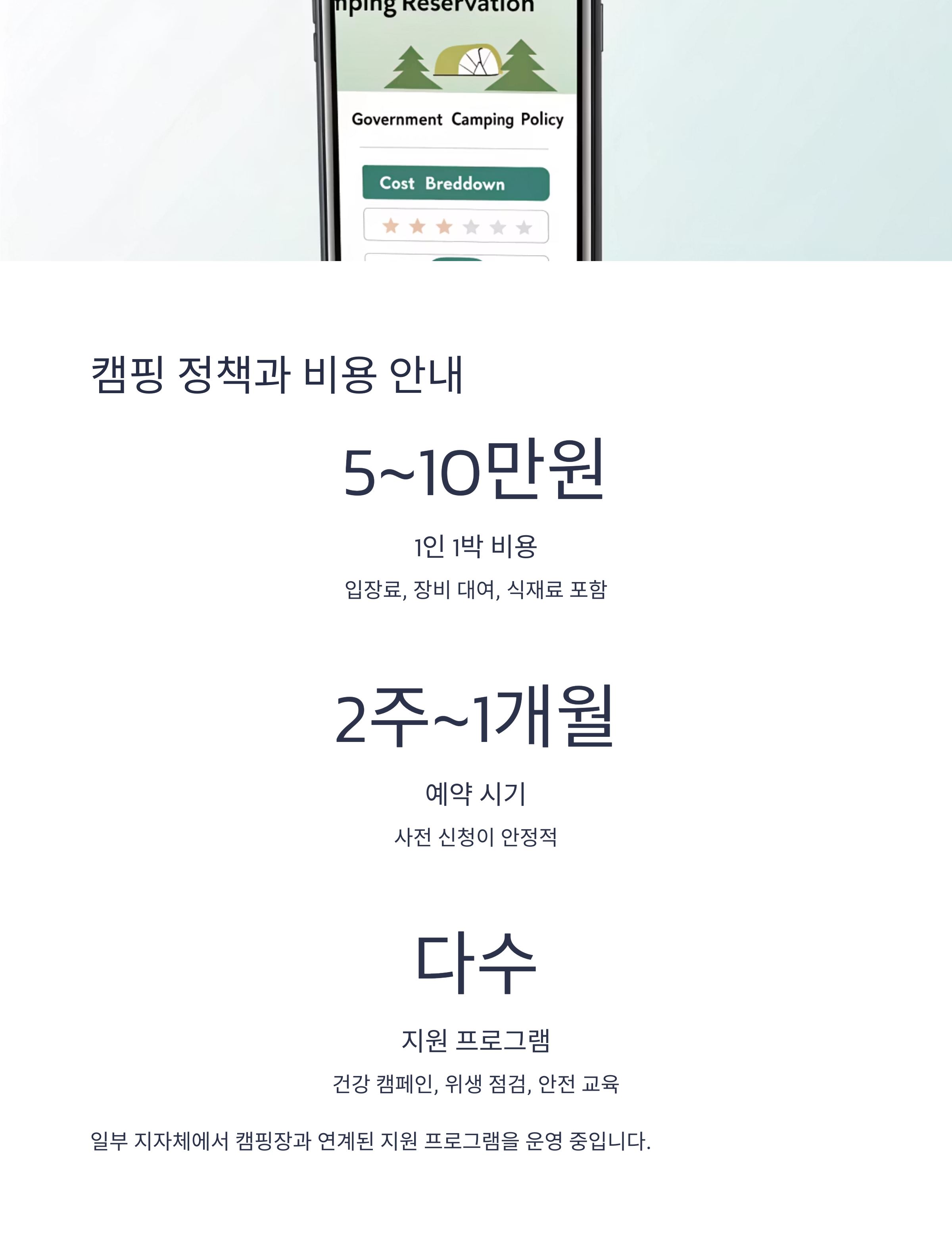 건강 캠페인, 위생 점검, 안전 교육 등 일부 지자체에서 캠핑장과 연계된 지원 프로그램 운영 중입니다.