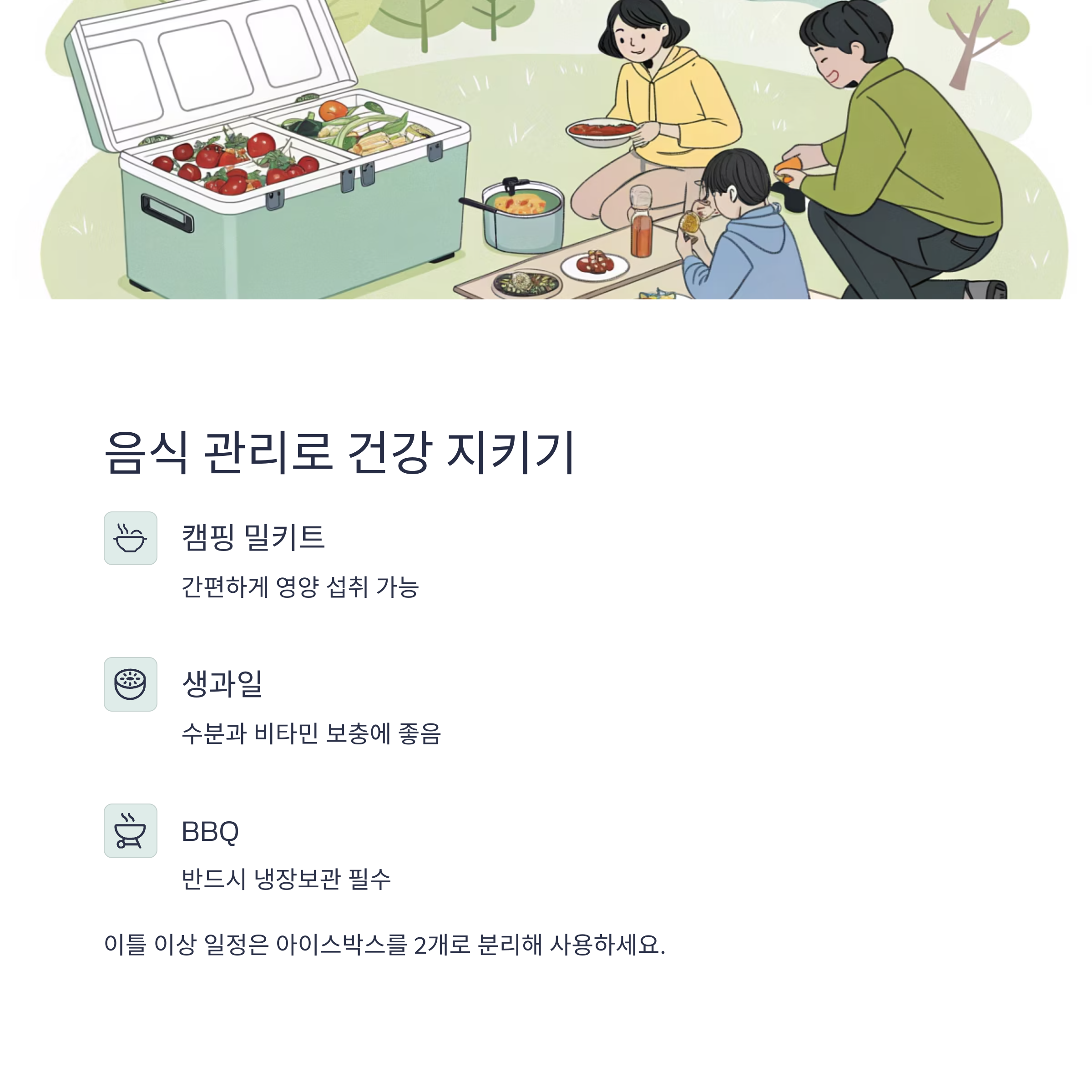 팁: 이틀 이상 일정은 아이스박스를 2개로 분리해 사용하세요.