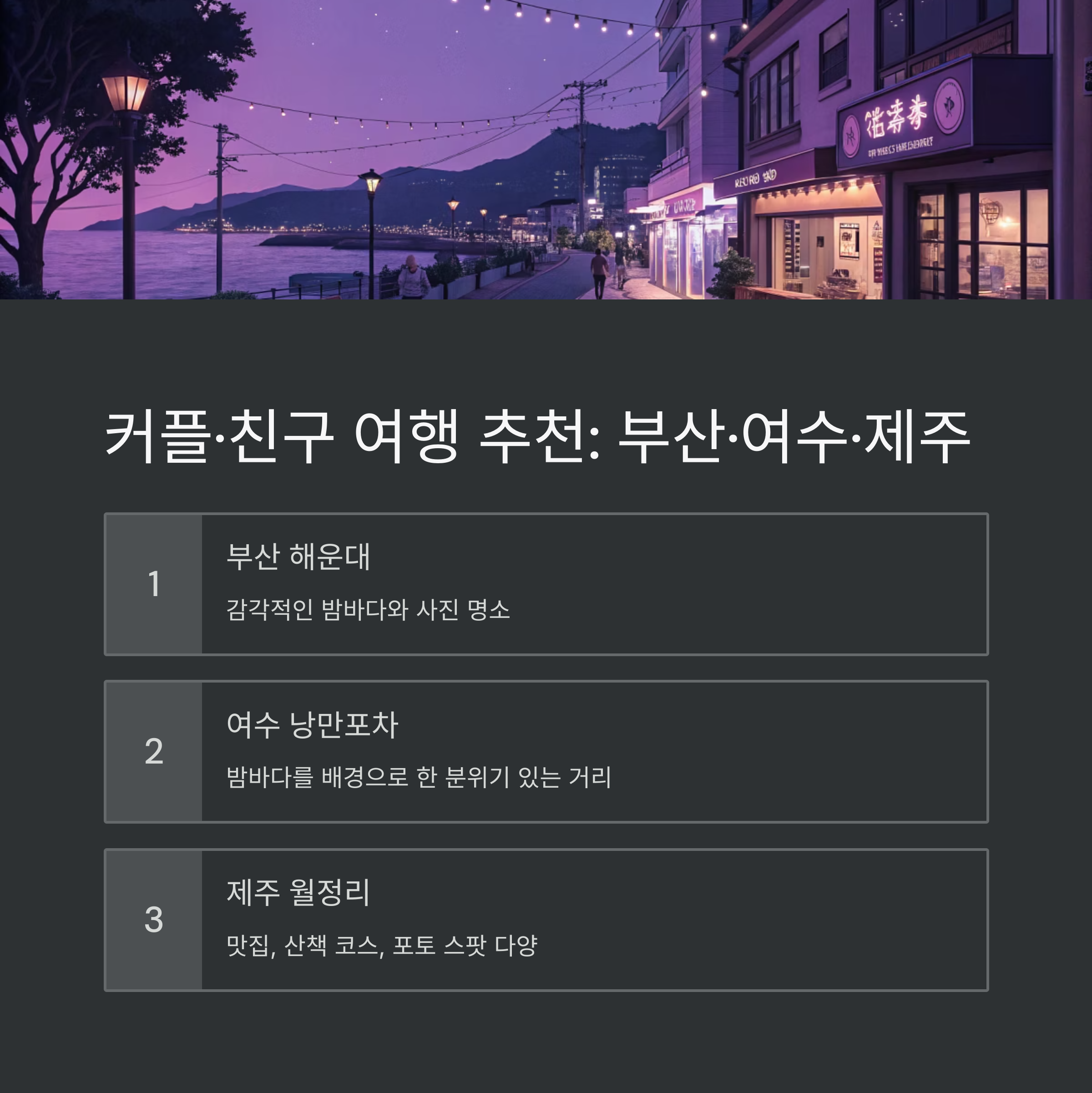커플이나 친구끼리는? 부산·여수·제주로