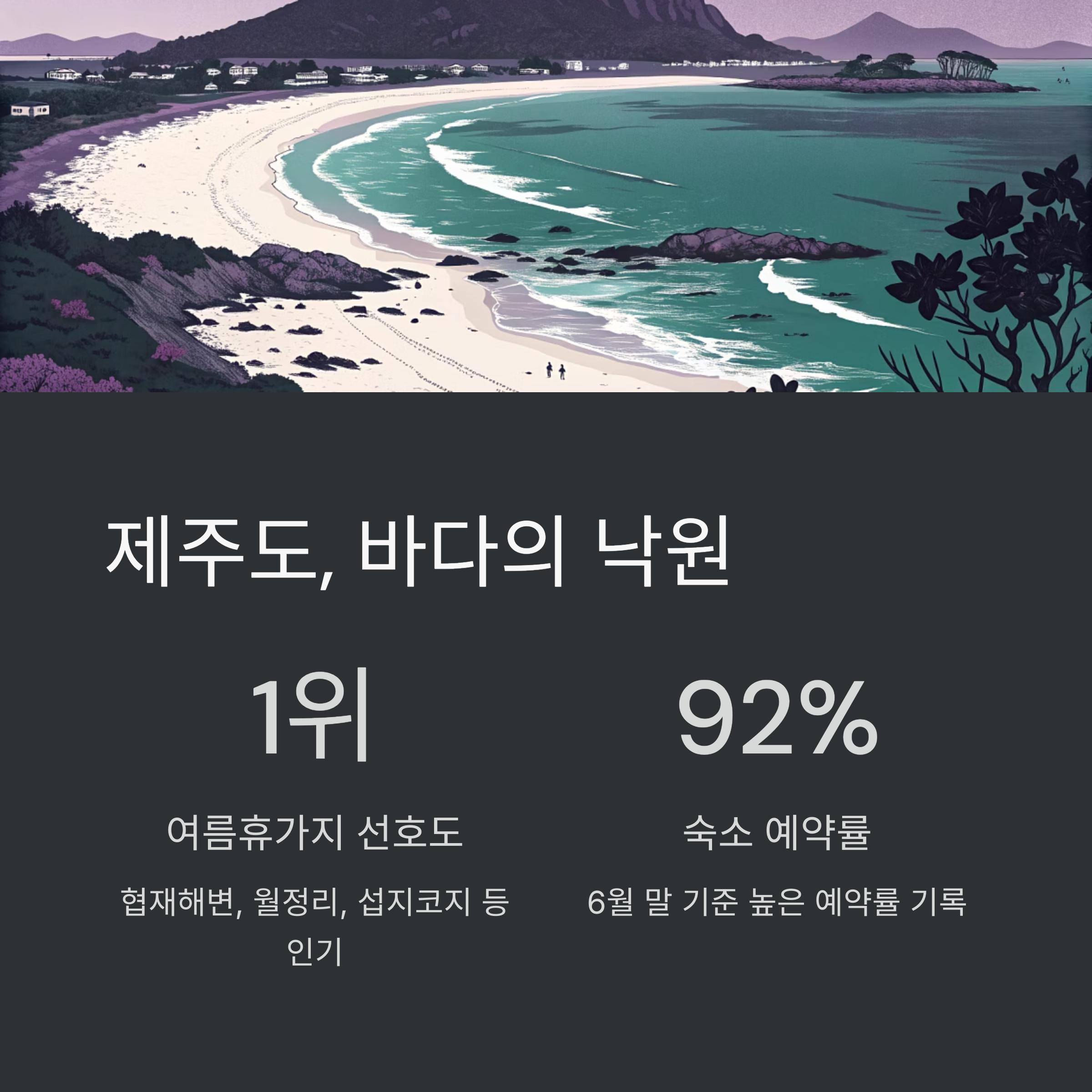 | 제주도 | 최고(90%↑) | 감성 여행, 숙소 예약률 최고 |