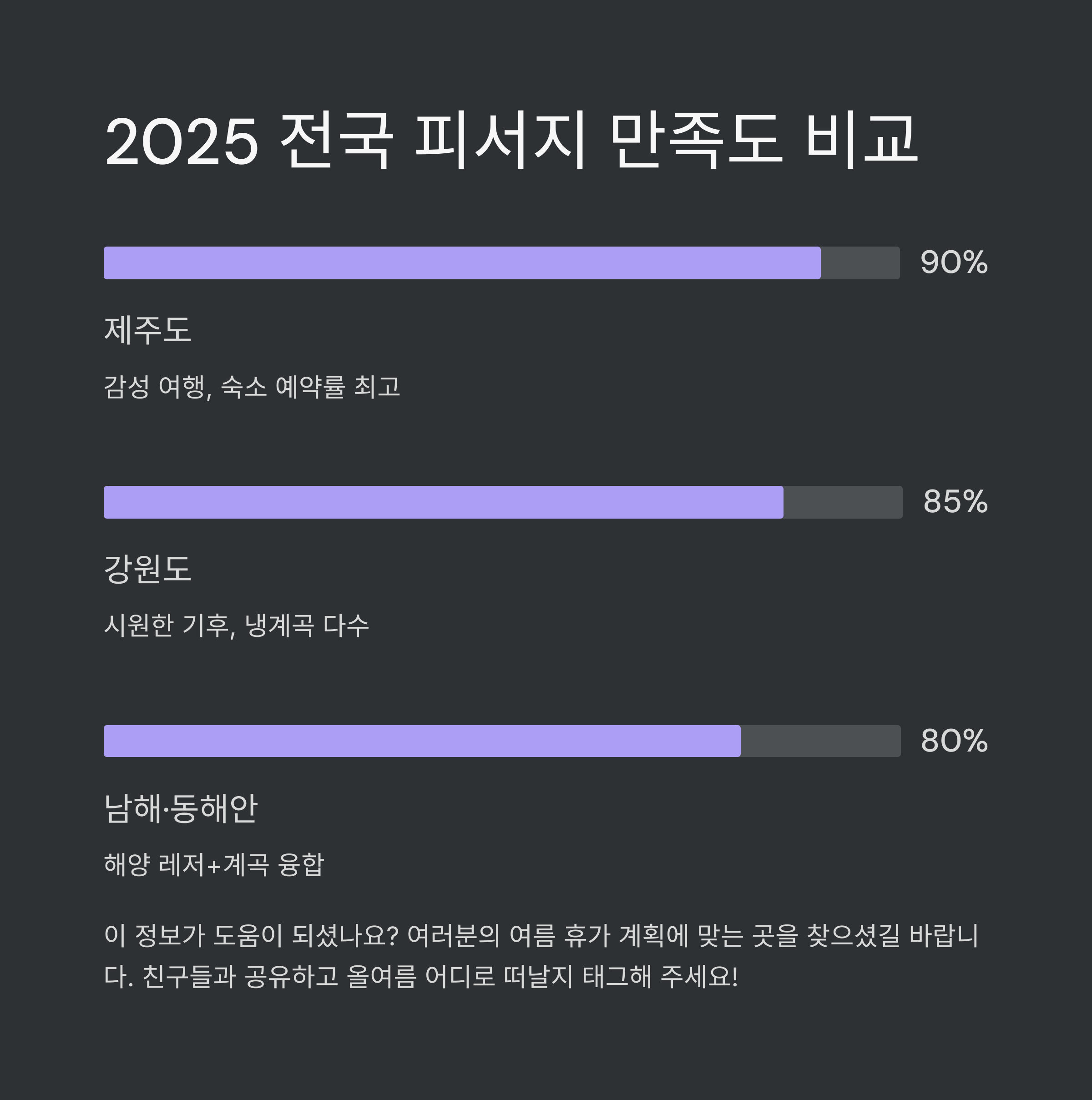 여름휴가를 계획 중이신가요? 2025년 국내 피서 트렌드는 자연 속에서의 휴식과 체험 중심으로 확실히 재편되었습니다. 본 글에서는 전국 각 지역별 대표 피서지를 실제 데이터와 만족도 기준으로 분석하여, 가장 시원하고 만족도 높은 여름 명소를 소개해 드립니다. 가족 여행, 연인과의 여행, 혹은 혼자만의 힐링까지 목적에 따라 선택할 수 있는 맞춤형 정보를 확인해 보세요.