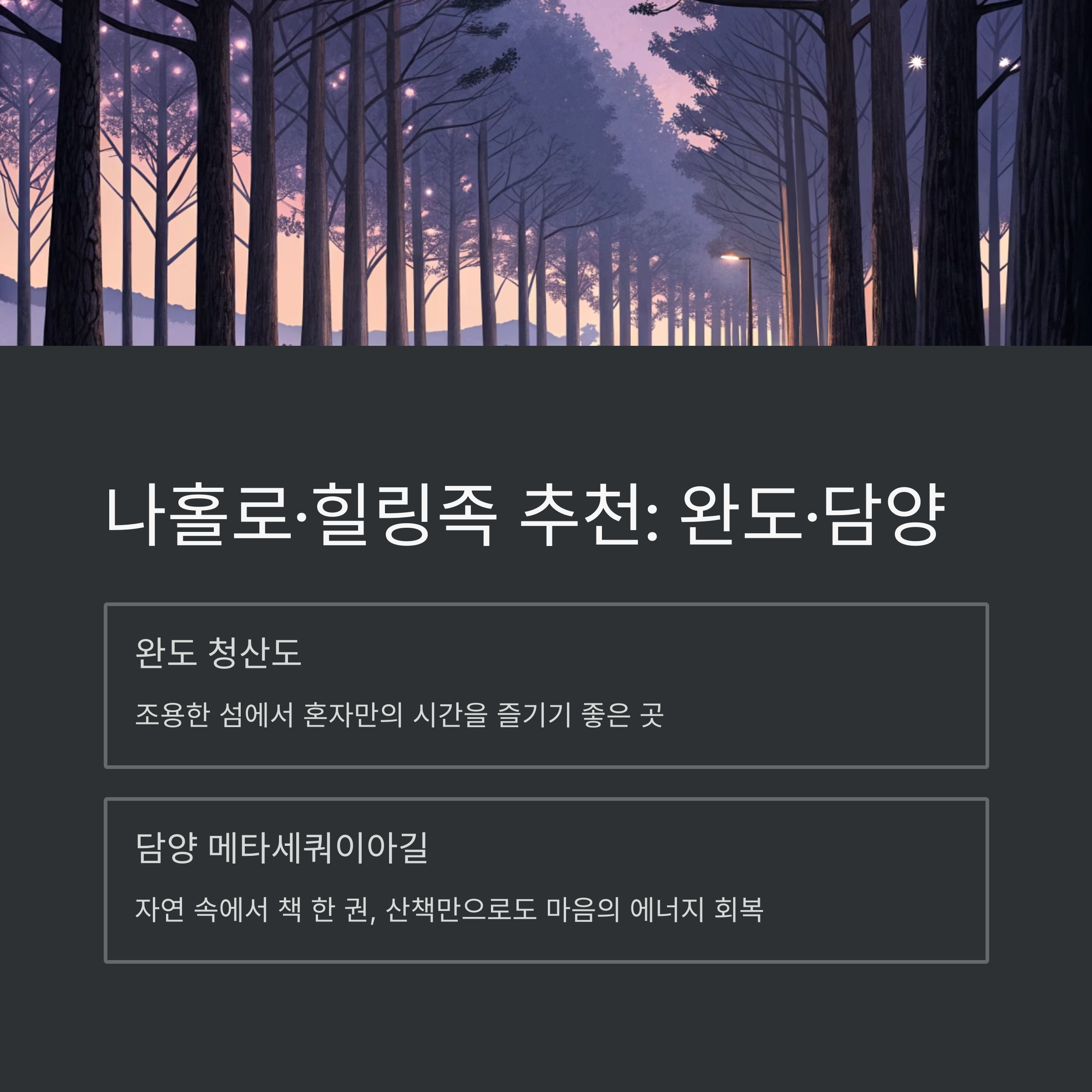 나홀로·힐링족을 위한 완도·담양 추천