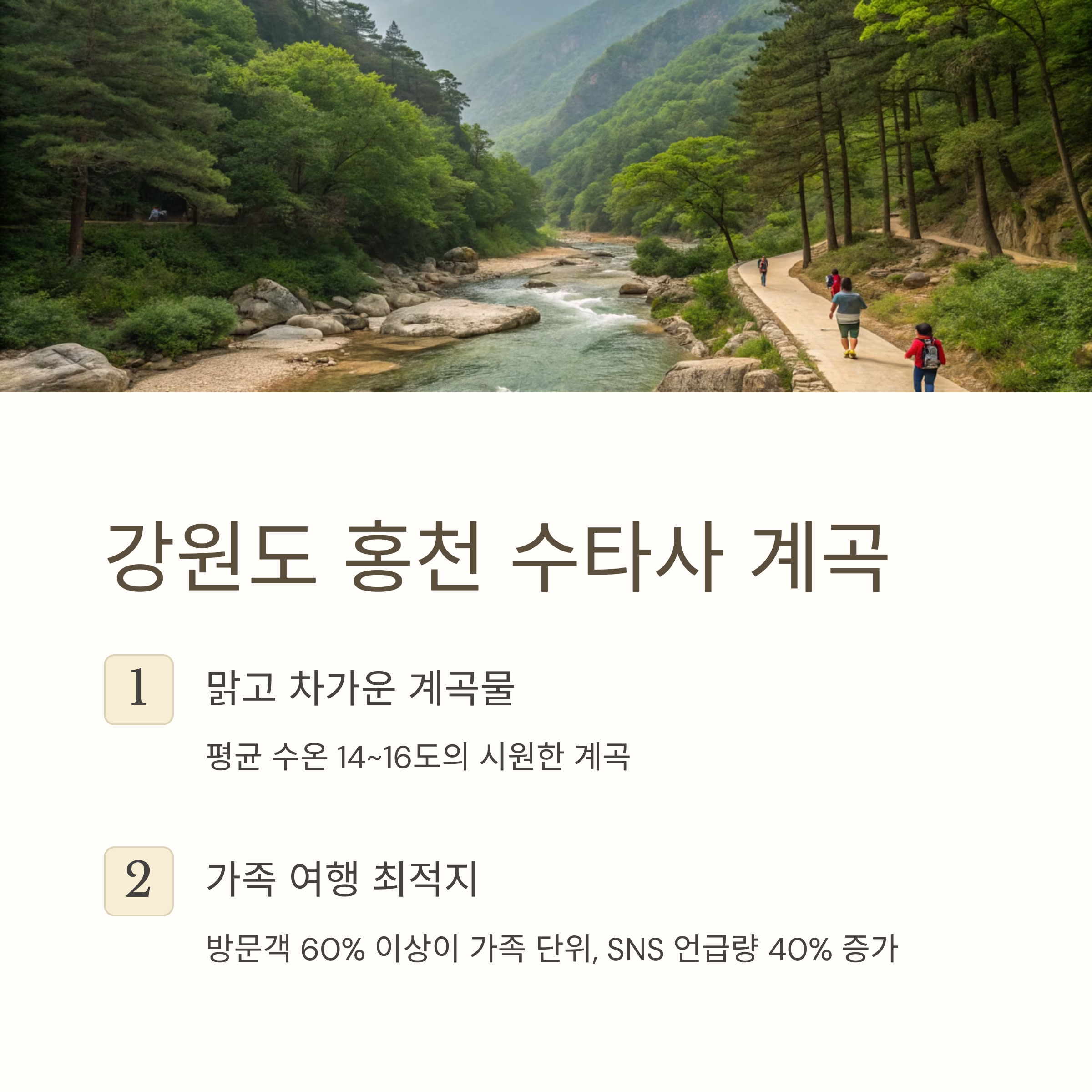 어우러진 수타사 계곡은 최근 가족 여행객 사이에서 급부상했습니다.