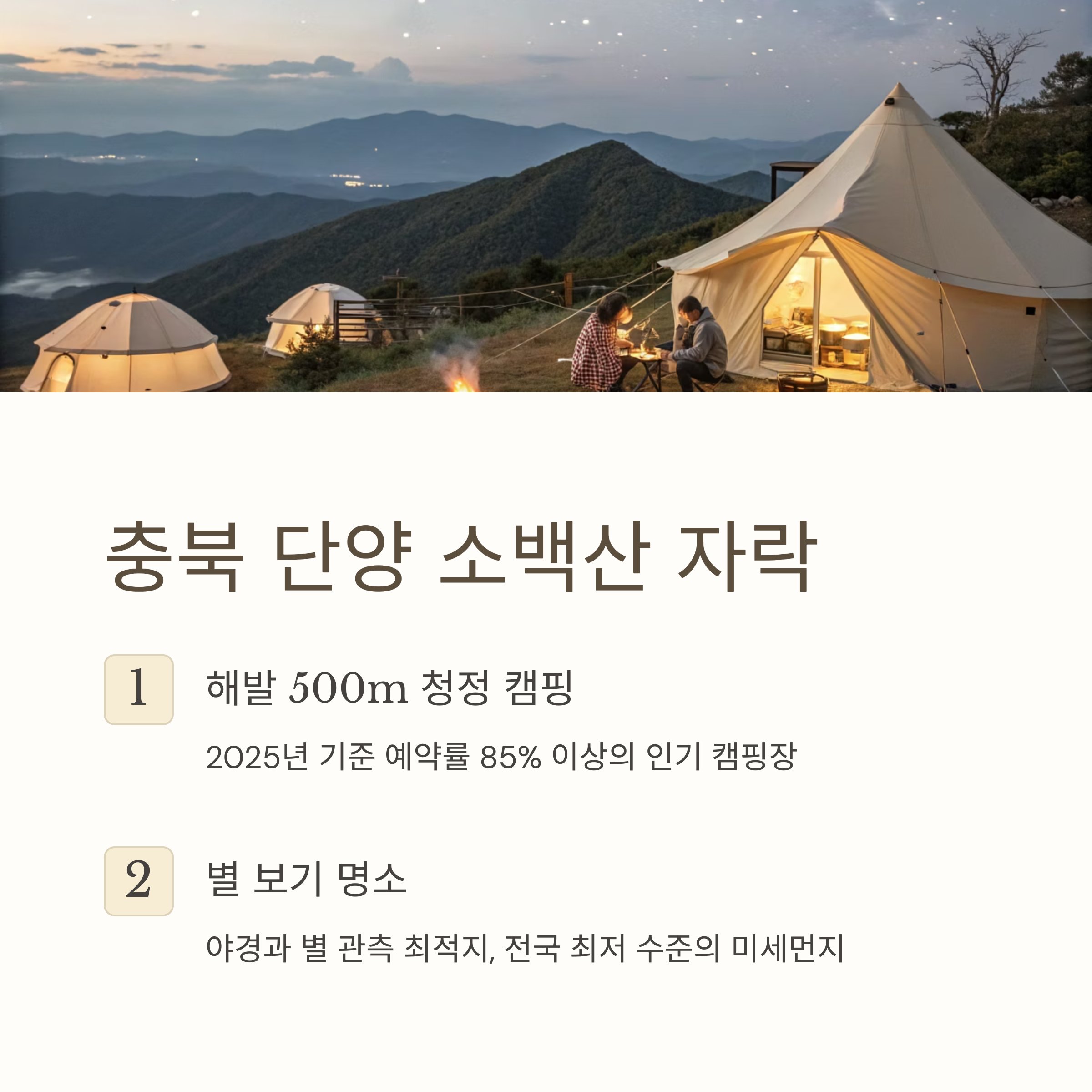 트레킹을 즐길 수 있는 단양 소백산 자락 캠핑장은