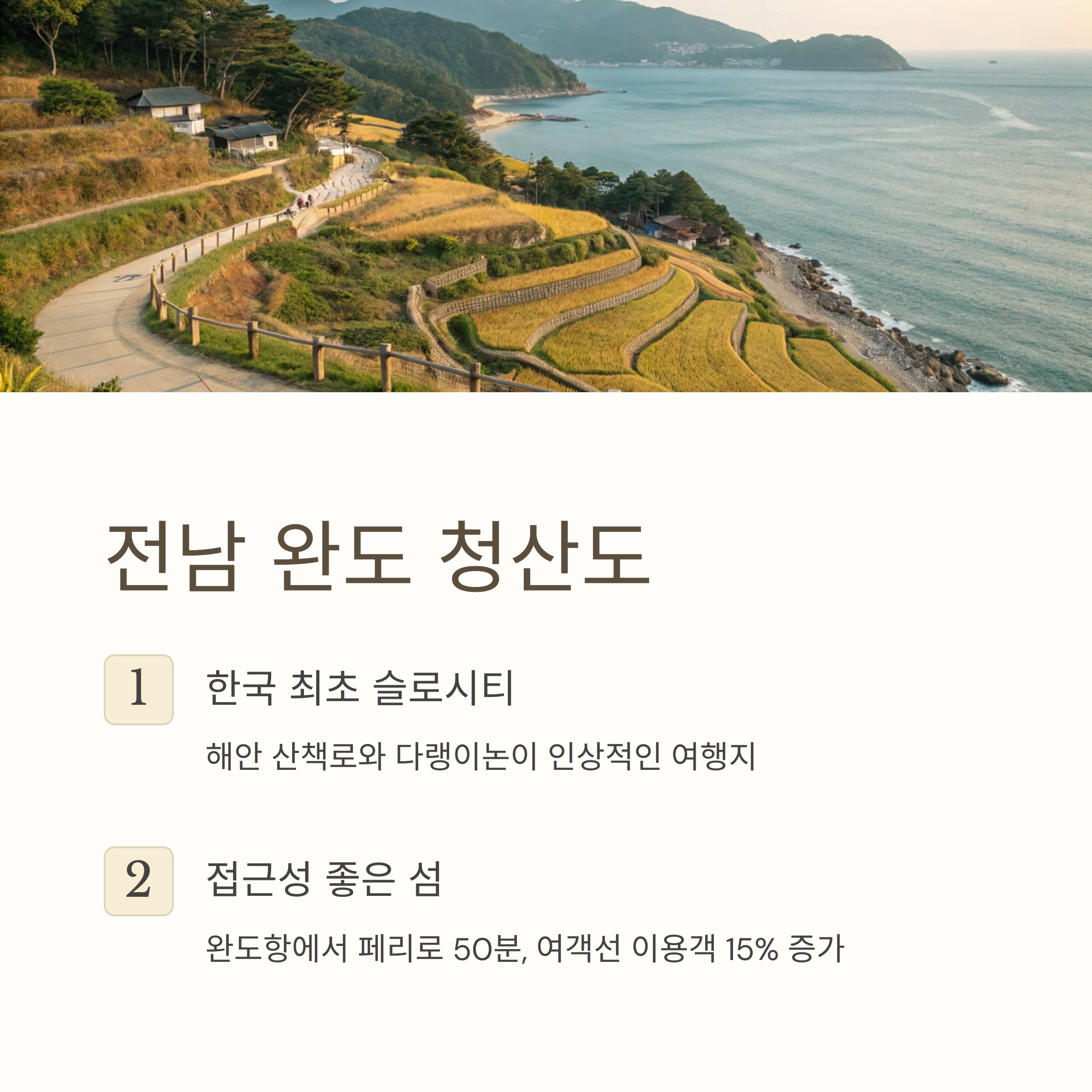 | 이동 시간 | 완도항 → 청산도 약 50분 |
