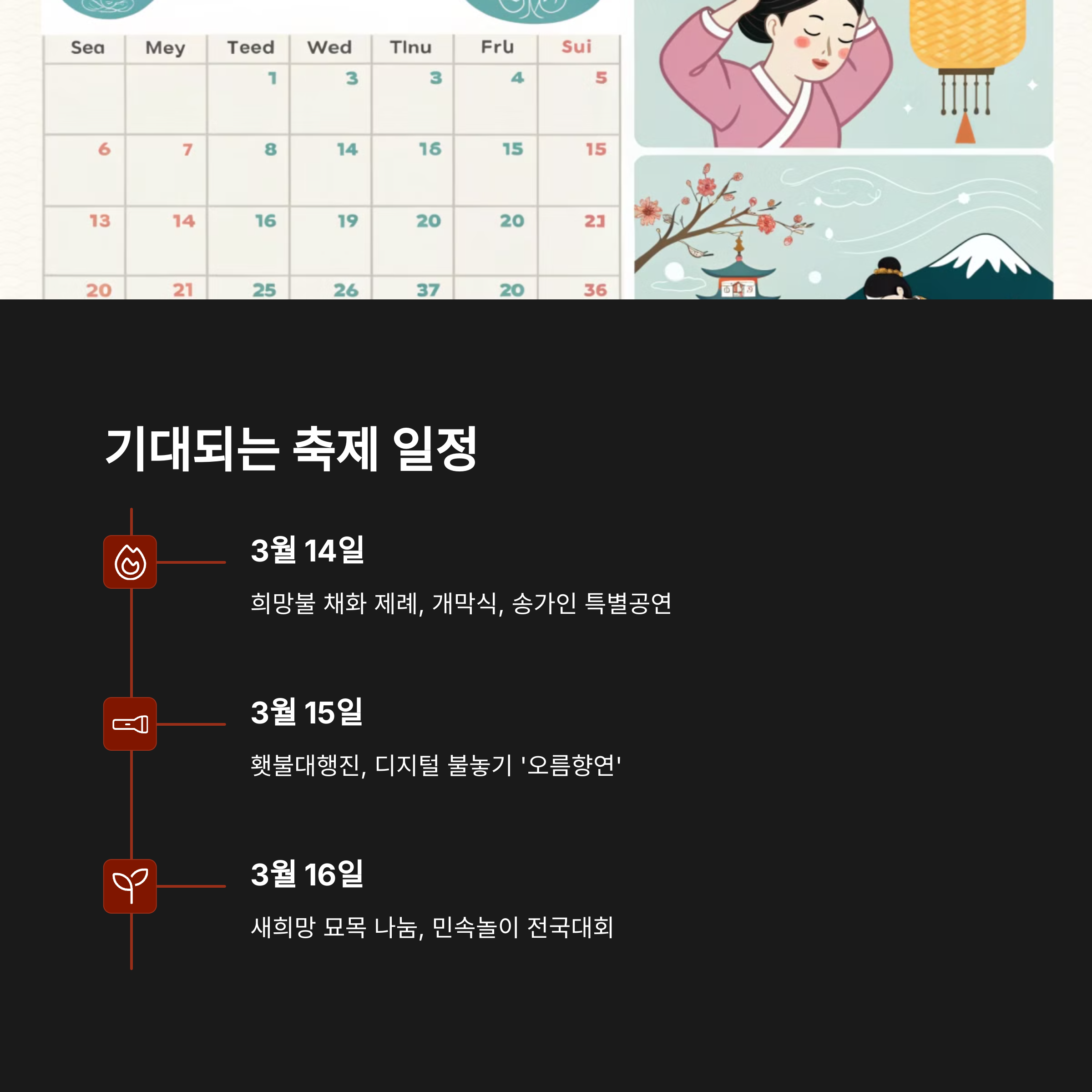 | 제주 들불축제 일정 | 2025년 3월 14일부터 16일까지 3일간 개최 |