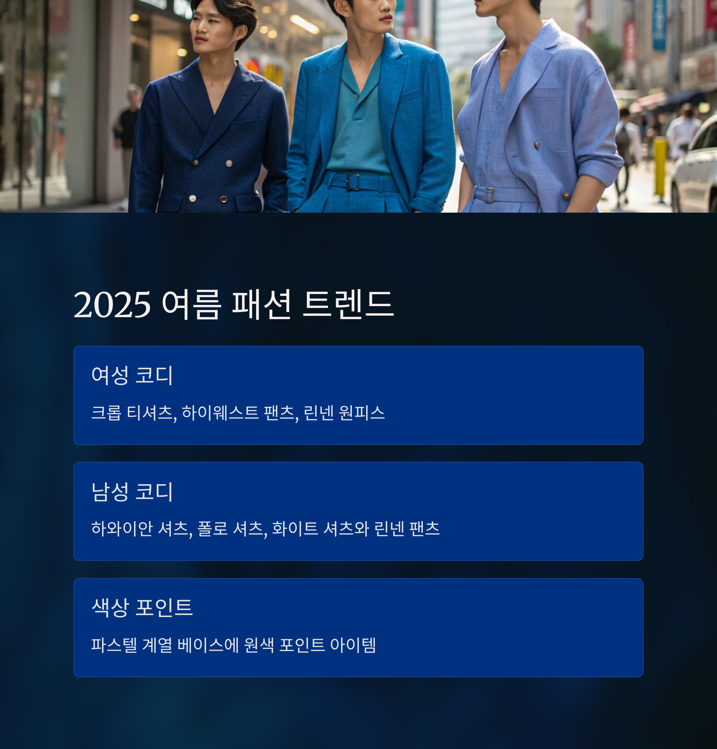 2025년 여름 시즌은 ‘미니멀+컬러’ 조합이 핵심 키워드로, 여행지의 특성에 맞춘 실용 코디와
