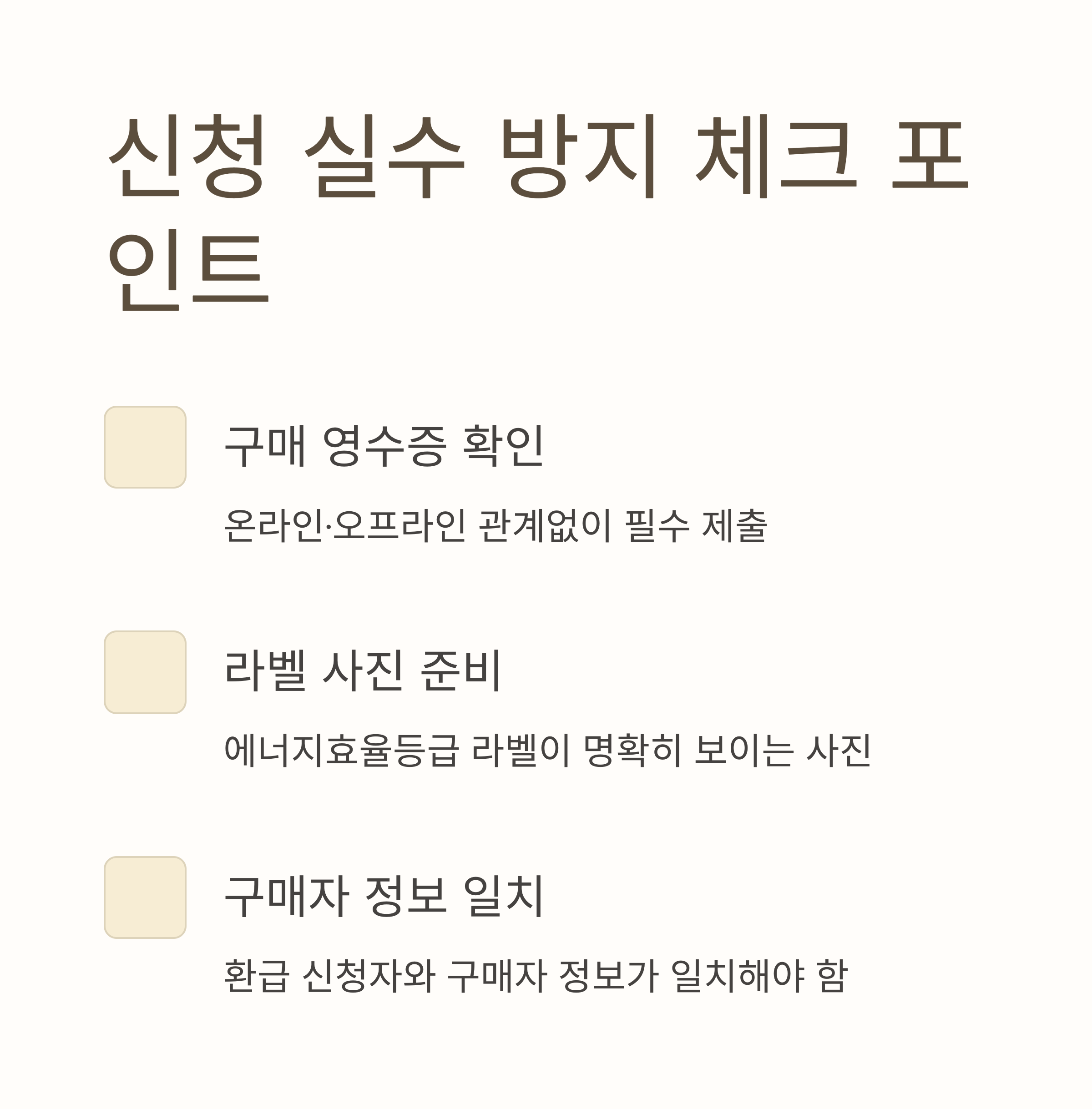 | 구매 영수증 누락 | 온라인·오프라인 관계없이 필수 제출 사항입니다. |