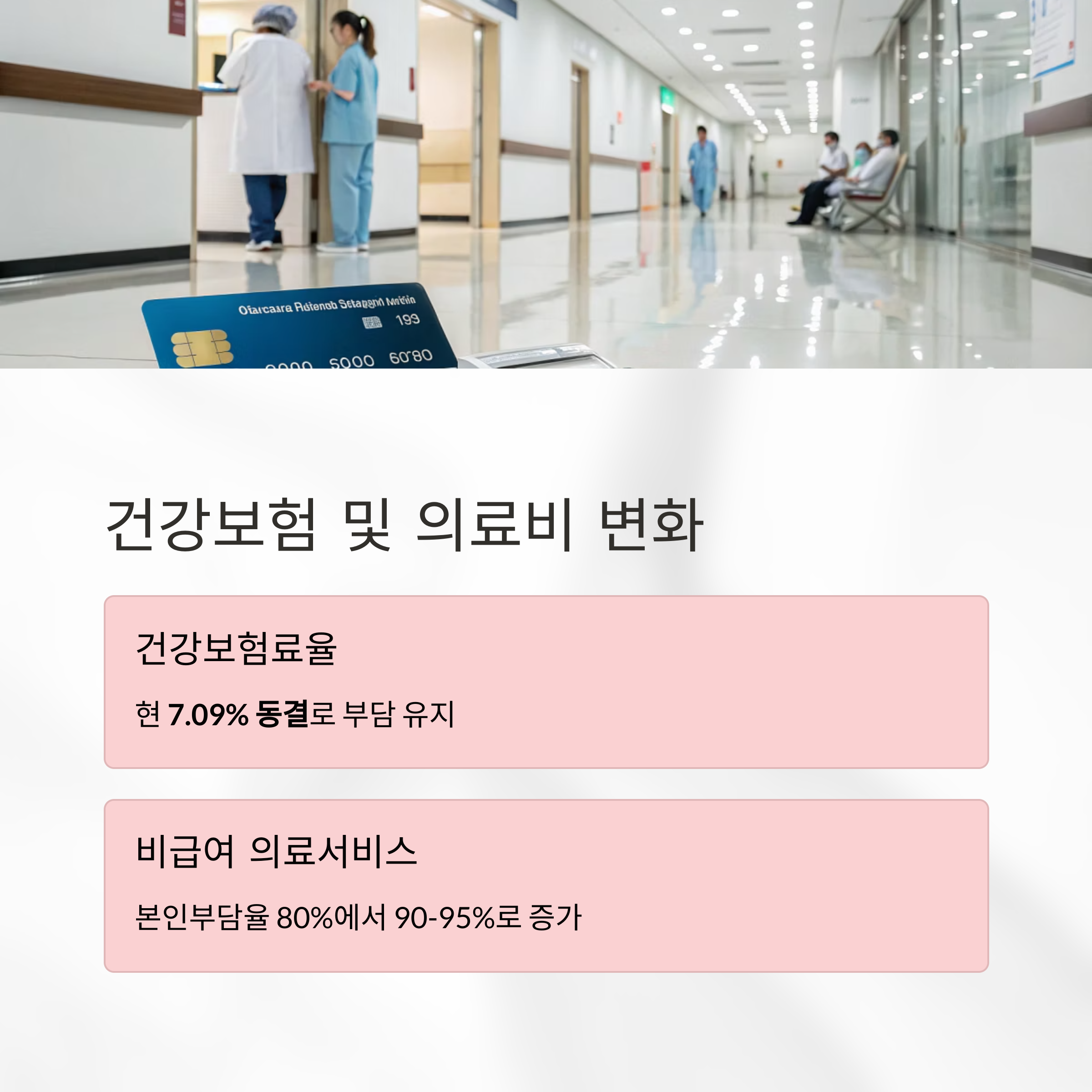 | 비급여 의료서비스 본인부담 | 일부 부담 | 90~95% 본인부담 |