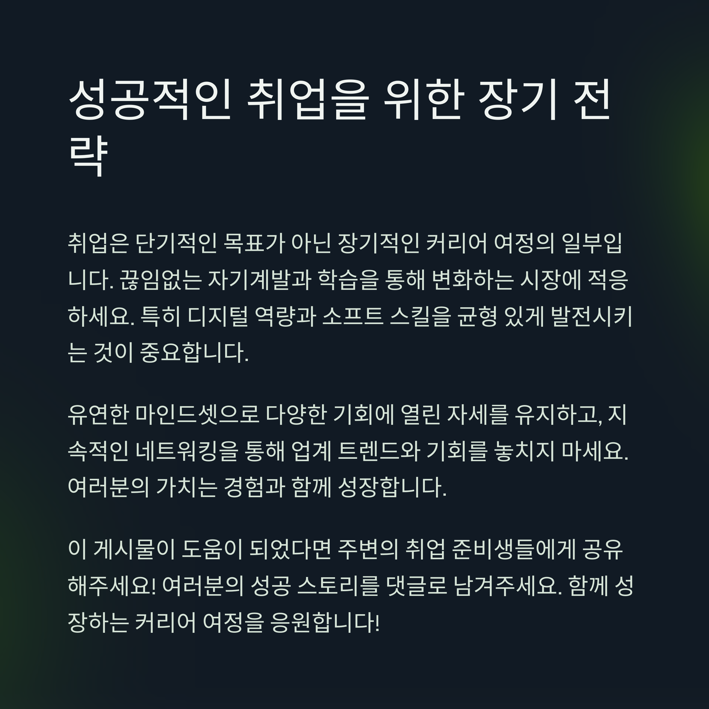 그리고 이 글이 도움이 되었다면, 주변의 취업 준비생들에게도 공유해주세요. 모두의 성공적인 취업을 응원합니다!