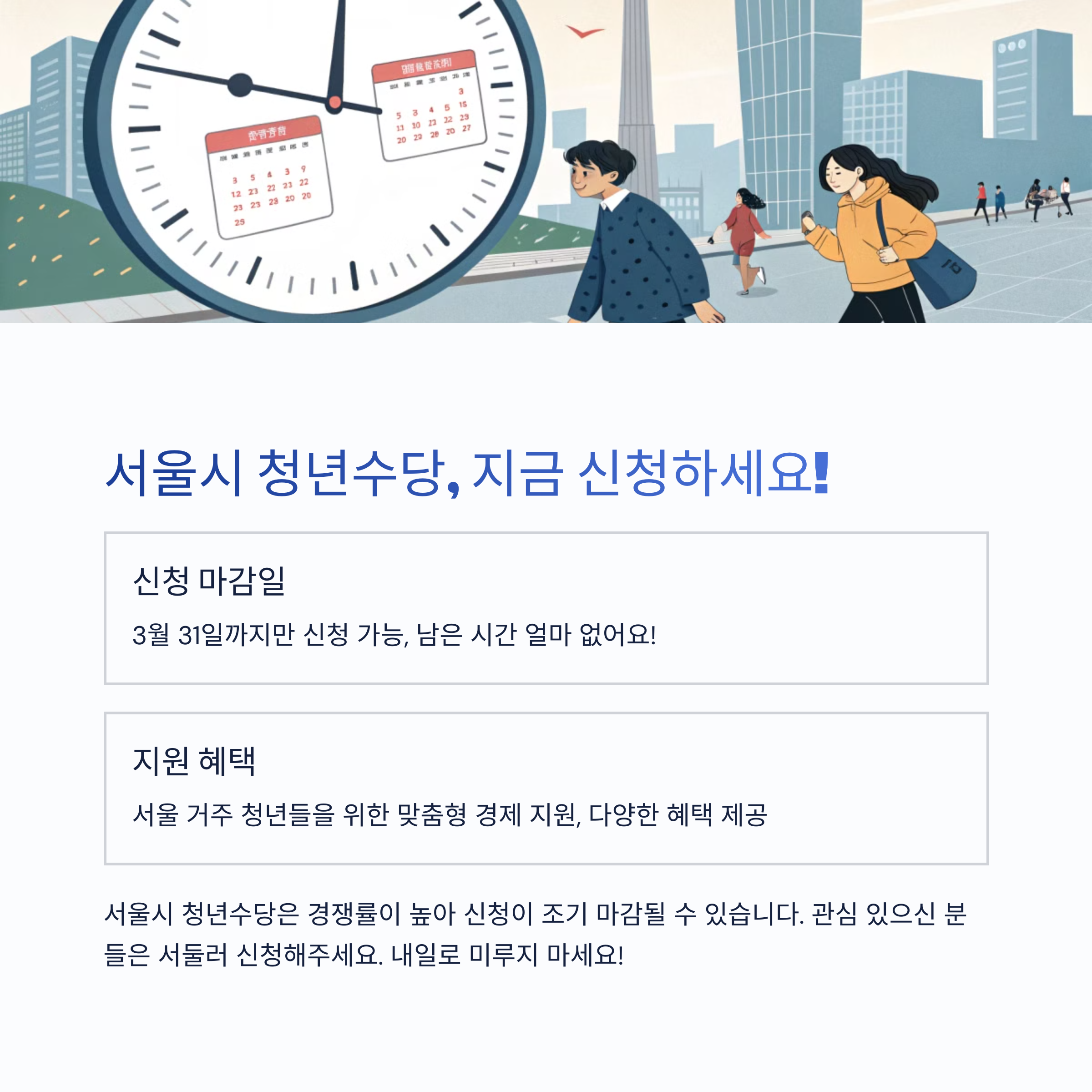 🏙️ 서울시 청년수당 - 4월 신청 놓치지 마세요!