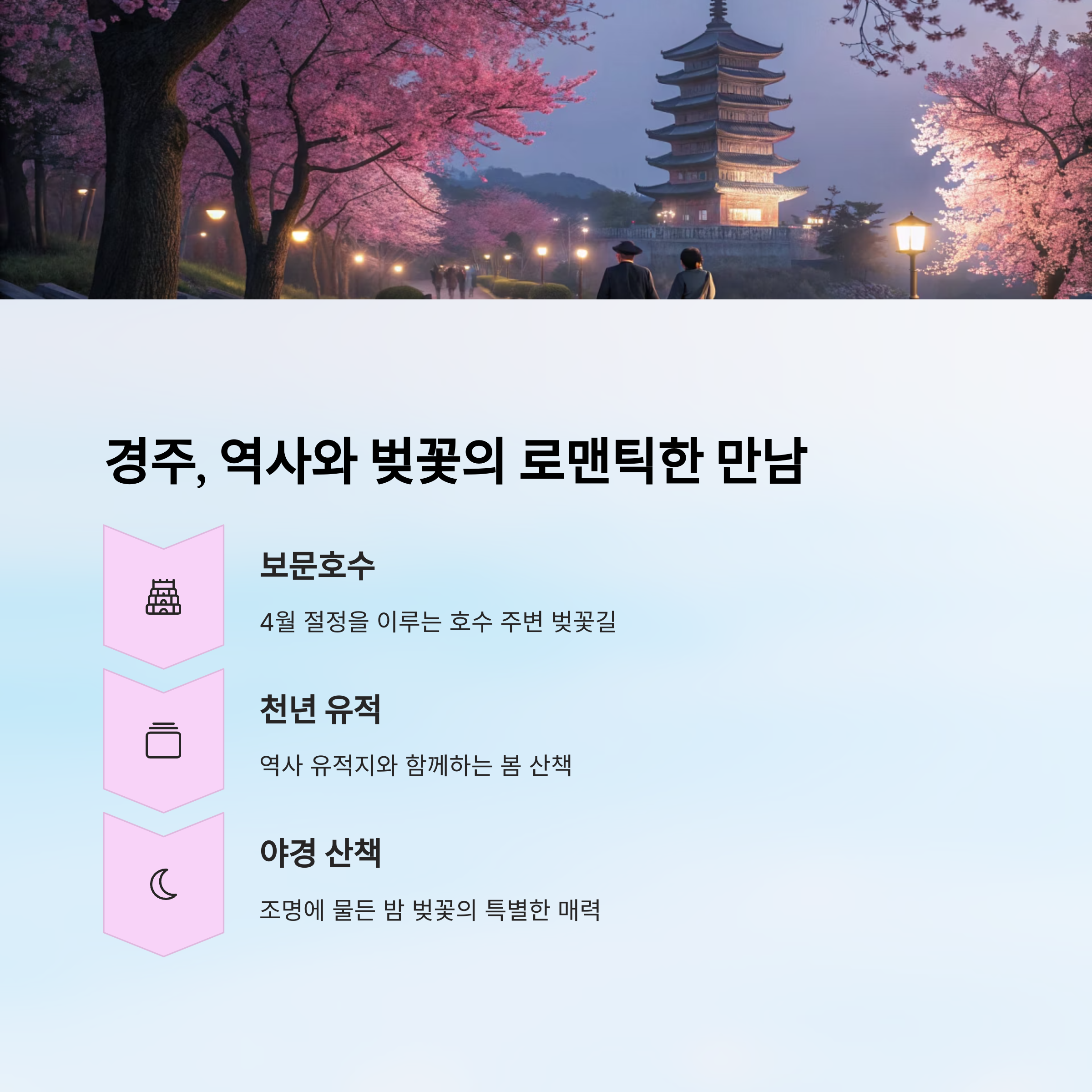경주는 4월 초부터 중순까지 벚꽃이 만개하는 도시로,