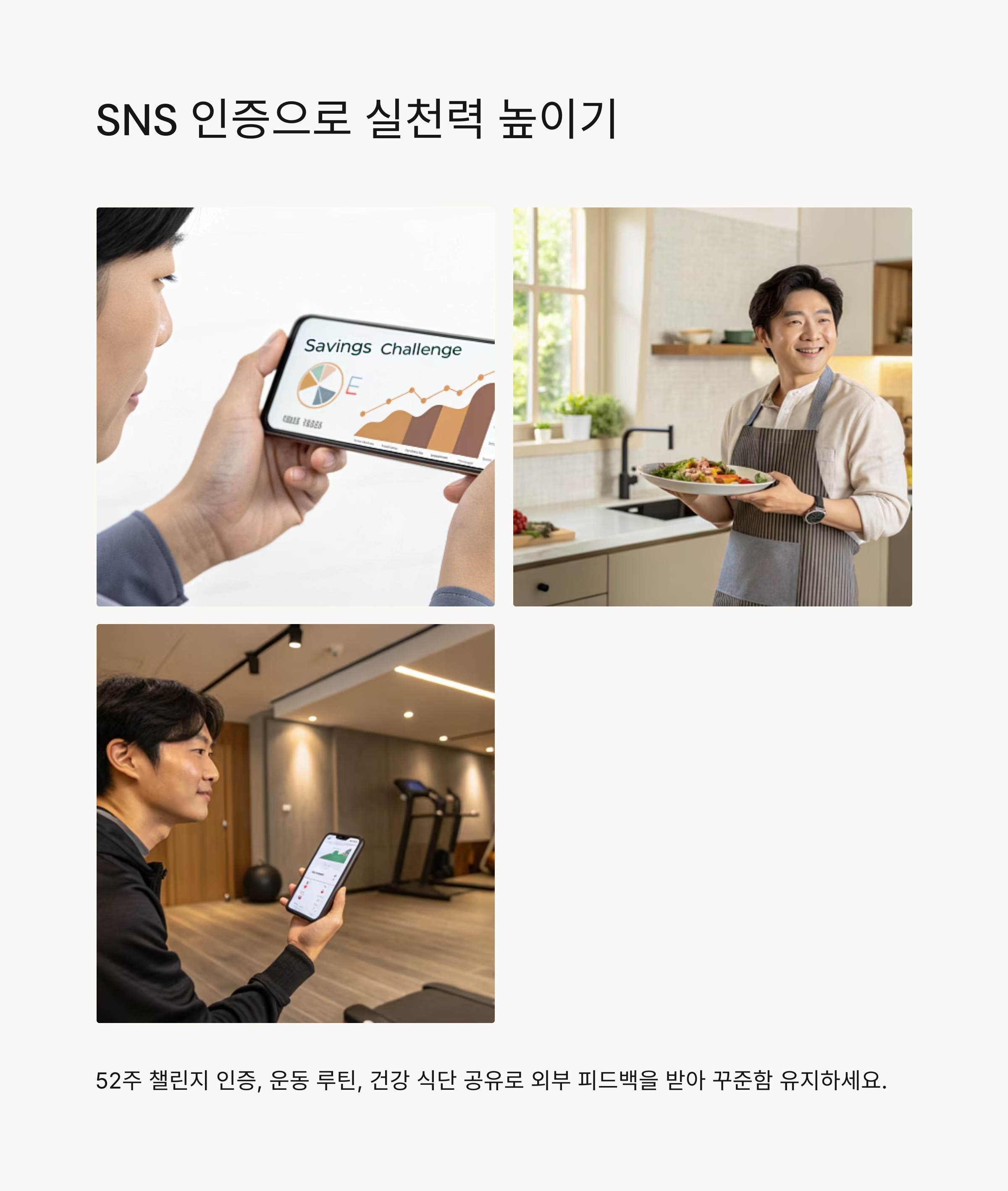 SNS에 저축 챌린지 달성, 운동 루틴, 건강 식단 등을 인증하면