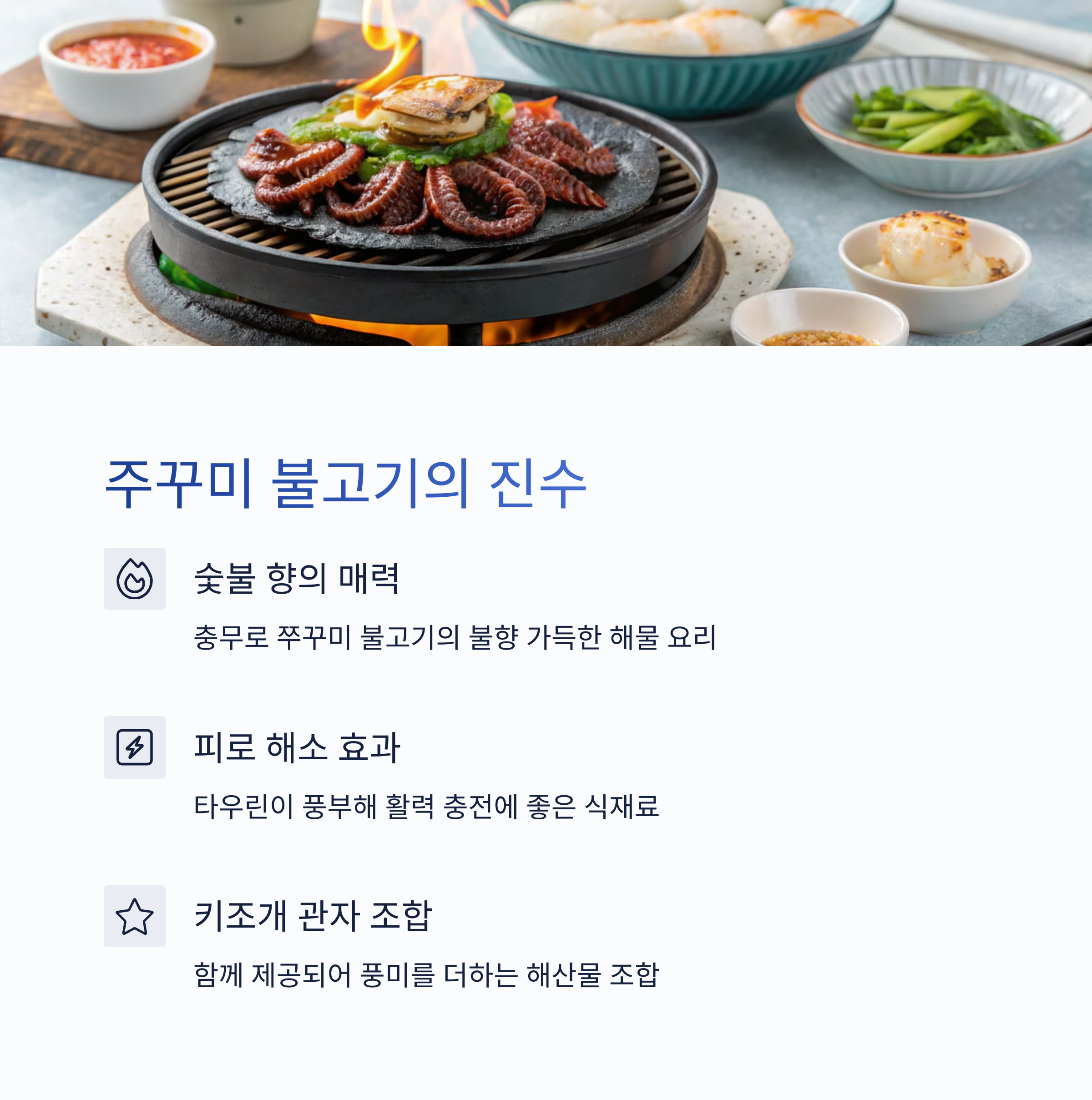 "쭈꾸미는 익히면 작아지므로 빠른 조리와 신선한 재료가 관건"이라는 현지 단골의 조언도 있습니다.